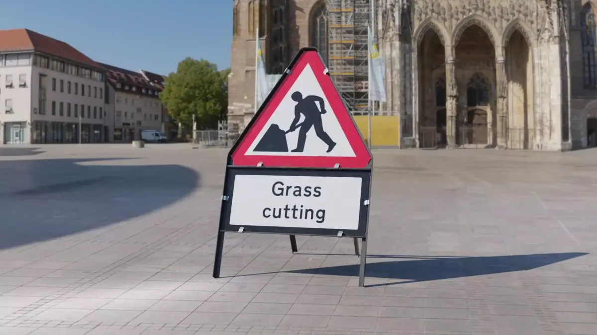 (7001) Man At Work Grass Cutting Supplementary Triangular Road Sign 750mm