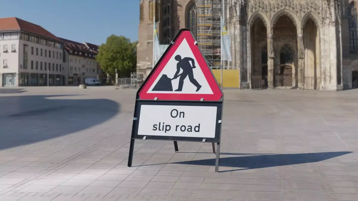 (7001) Man At Work On Slip Road Supplementary Triangular Road Sign 750mm