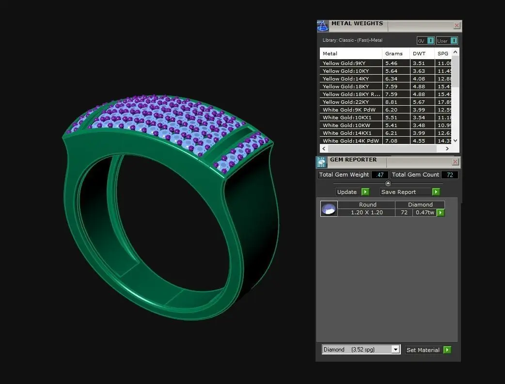Gems: - Total gem count is 72 and total gem weight is .47. There are gems round 2.20 and oval 9.30 x 7.40. More info in the picture above.