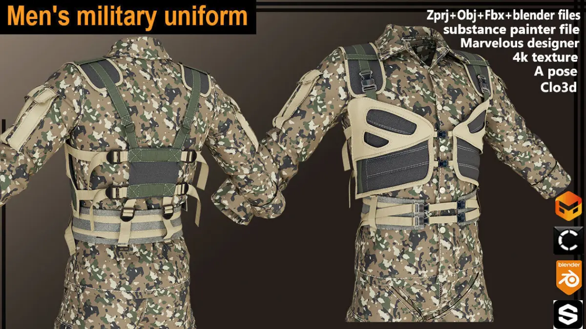Marvelous Designer/Clo3d Projects(ZPRJ) + OBJ + FBX + blender + substance painter.