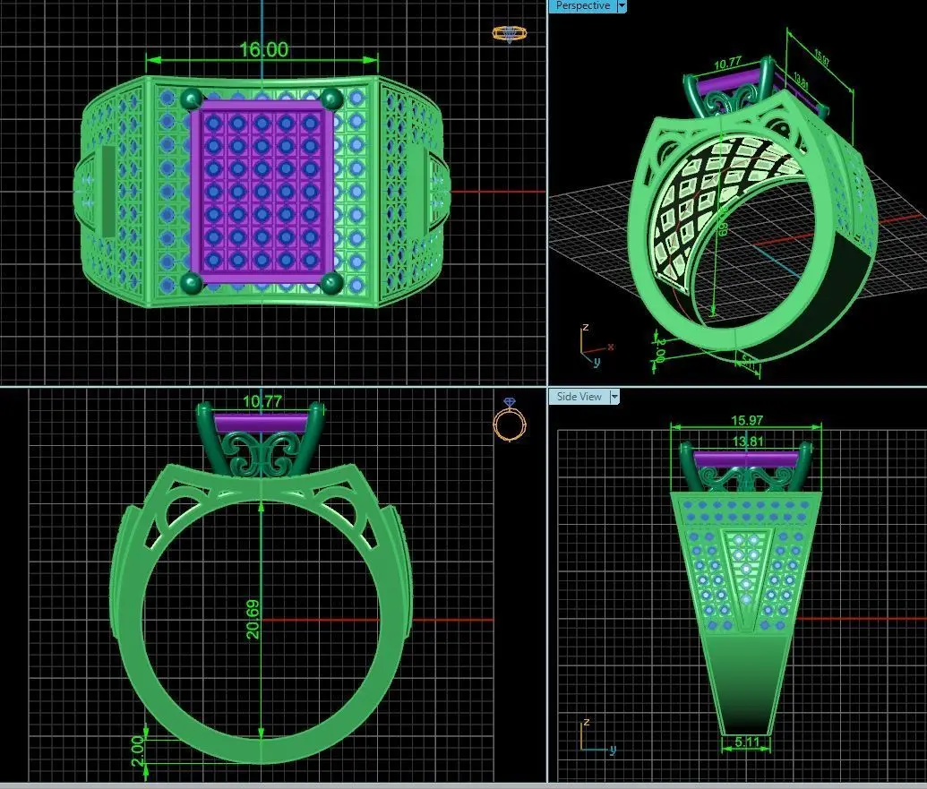 jewelry 3D modeling, creative design, cam/cad, rapid prototiping, rendering, animation original classic evening ring stylish trendy elegant graceful diamond pave band ring