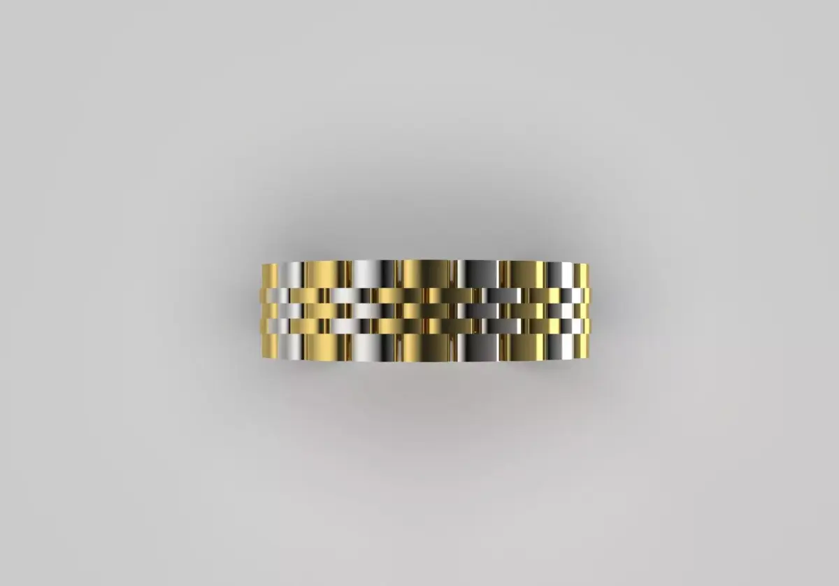 Technical and Attractive Description for Sale (Rolex President Band Ring)Model: ror0040 - The Two-Tone President BandA sleek, minimalist take on the luxury watch band design, this ring showcases the perfect blend of glamour and masculine elegance.