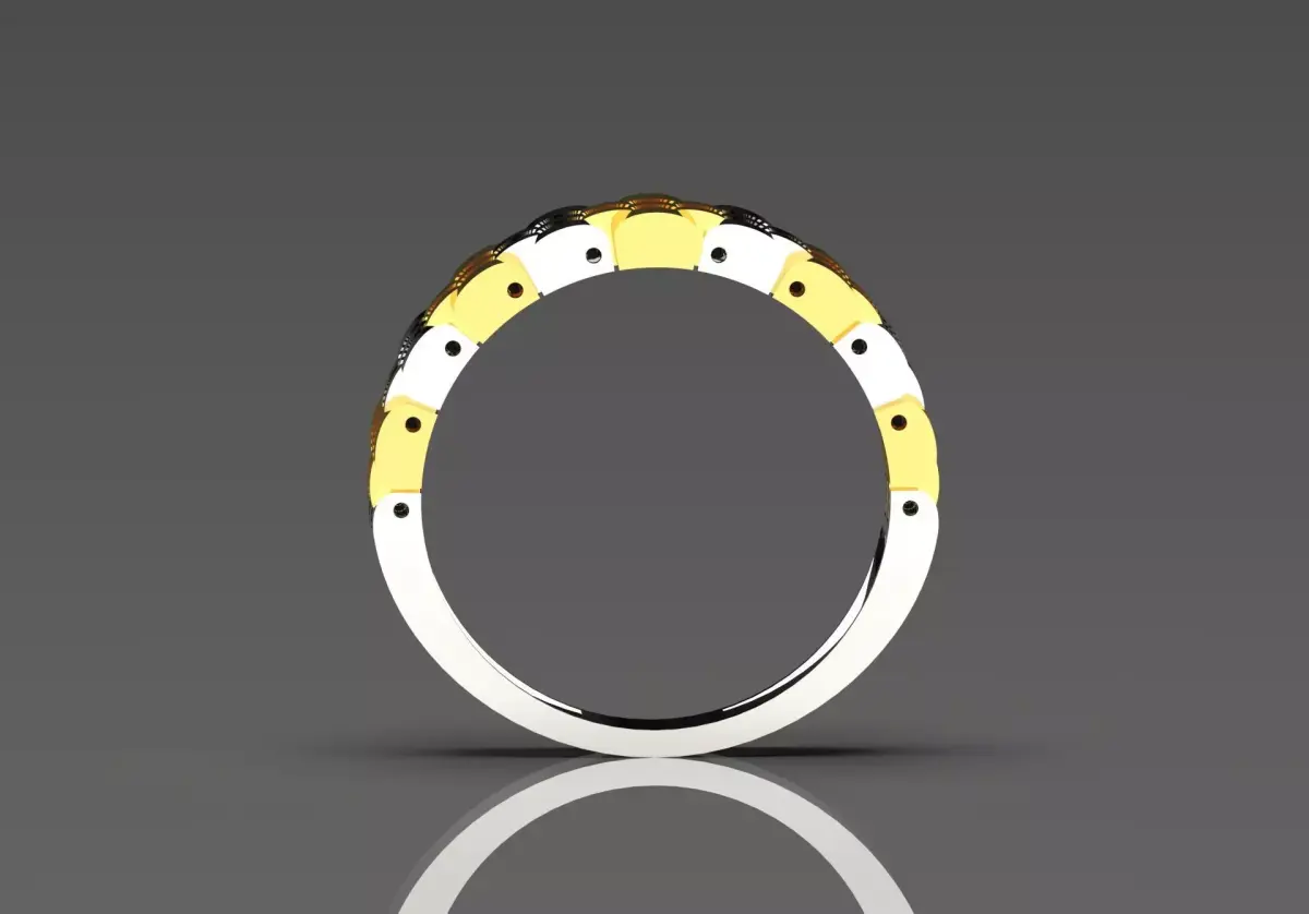 This ring embodies power in simplicity. Inspired by the famous Rolex President Bracelet, a symbol of exclusivity and classicism, this ring is designed to convey elegance without exaggeration. The smooth, semi-circular links of this model create a stunning contrast of shiny yellow gold and polished white gold that sparkles in the light, making it a timeless choice for the man who values quality and prestige.