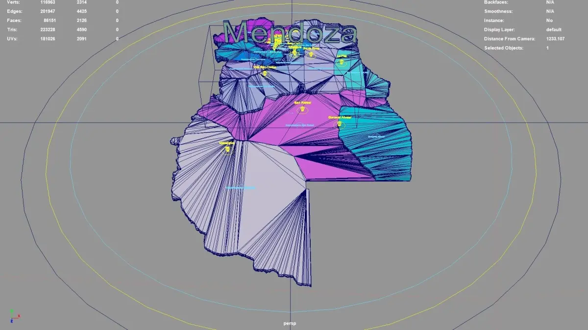 Mendoza regions : The model is divided according to the administrative region of Mendoza. Each region is clearly separated so you can easily isolate it or change the colors. Names are also editable and separate.