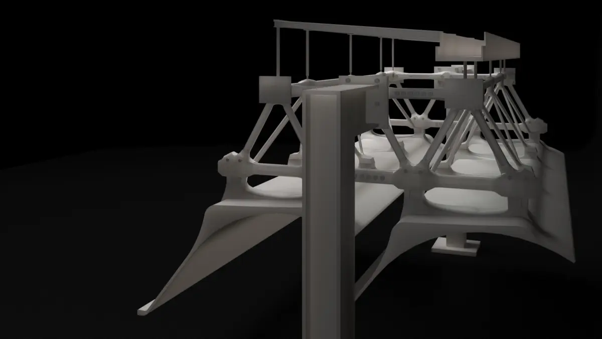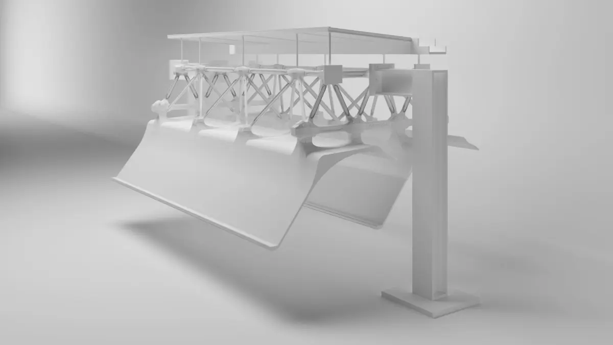 This is a sample module of the structural roof system of the Menil Collection building, designed in 1987 by architect Renzo Piano and engineering firm ARUP, modeled in sketchup and rendered in 3dsmax vray, in a studio-like set up.A synthetized and compact model of the posts (deliberately shortened), the cement leaves filtering the sun light, the triangular iron girder truss and the glass panels support on top of it. This ensemble unit forms the basis of the iconic roof of the Menil Collection. It is repeated all throughout the building, for the exterior perimeter as for the interior galleries.
