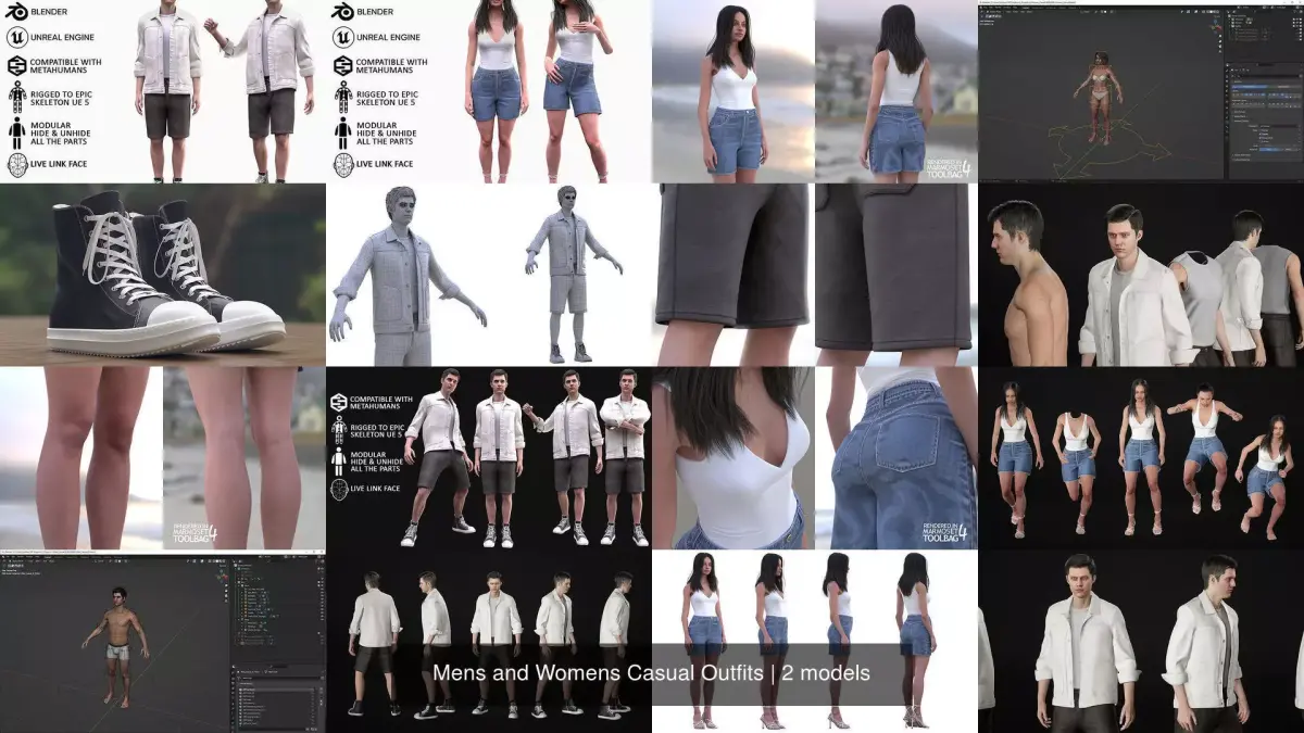Mens and Womens Casual Outfits 3D Model Collection