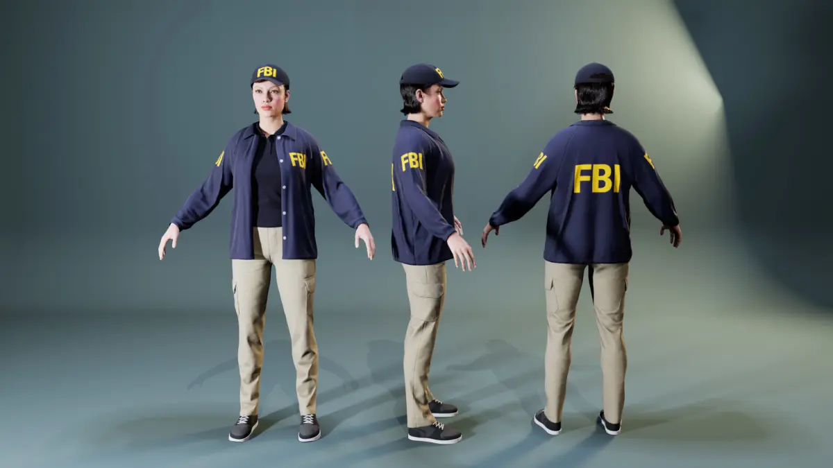 Men's and women's clothing of FBI agents is designed for MetaHuman (male/female tall normal weight)
