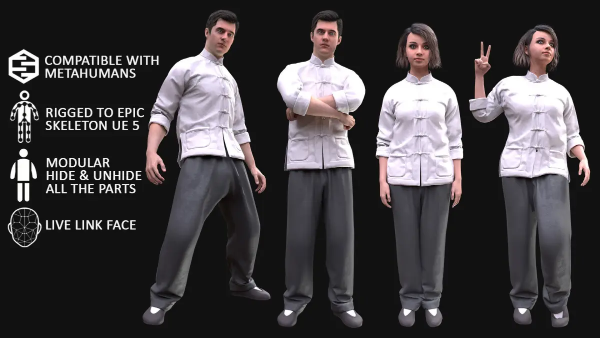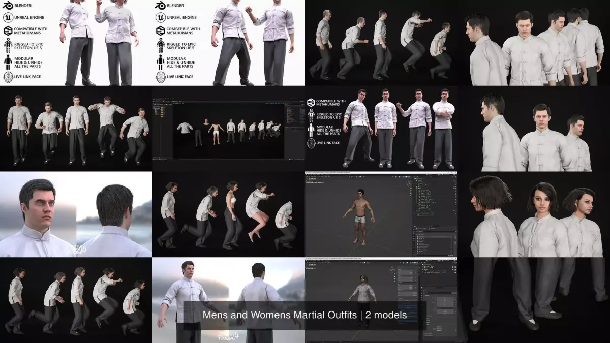 Mens and Womens Martial Outfits 3D Model Collection