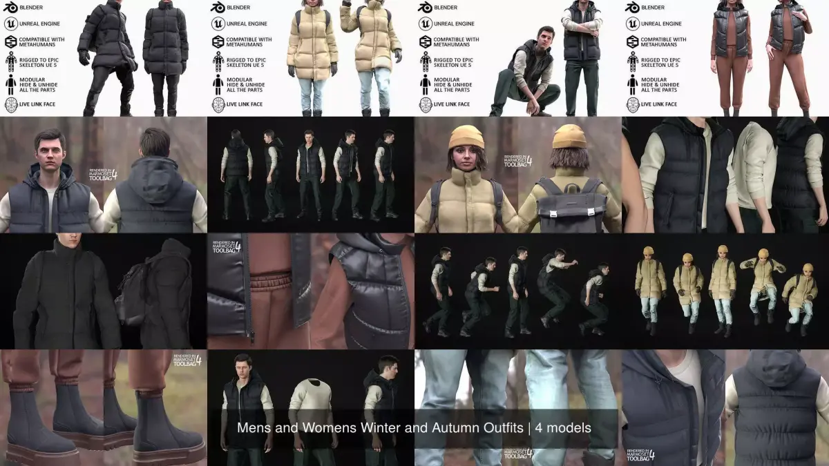 Mens and Womens Winter and Autumn Outfits 3D Model Collection