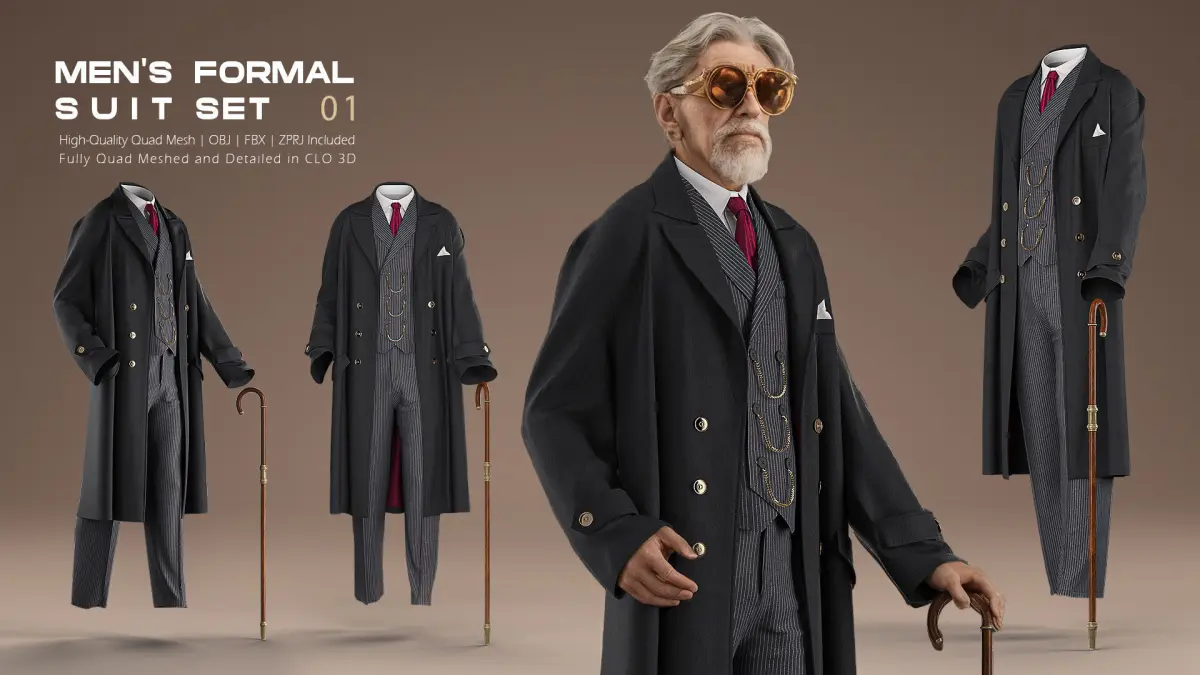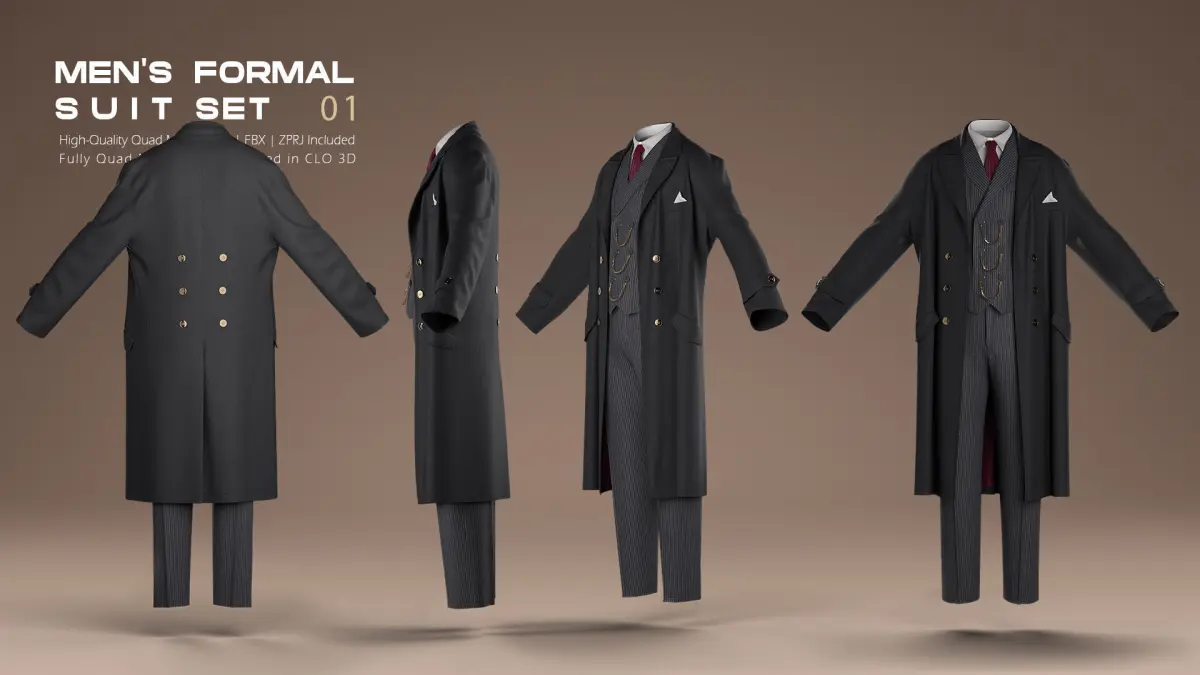 A high-quality 3D formalwear set designed for digital fashion, game assets, and character visualization.