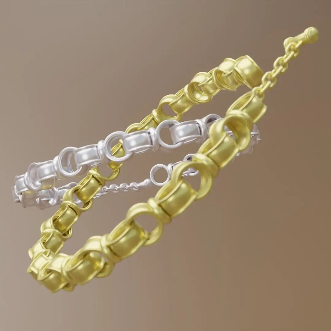 Mens Bracelet in gold and silver shade modeled in Blender 2.91 and the same is rendered in cycles.Vertices-610816Edges-1220733Faces-610348The Size of the bracelet is Radius - 3.35cm. Circumference -21.05cm.Check before printing.The model is good for advertismenets, the background is creamy rose and its lighted by 3 lightings.3D model