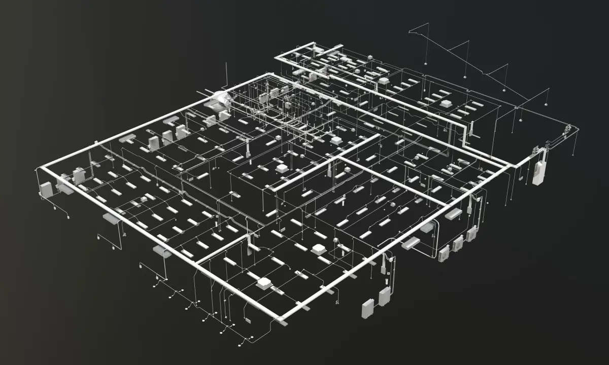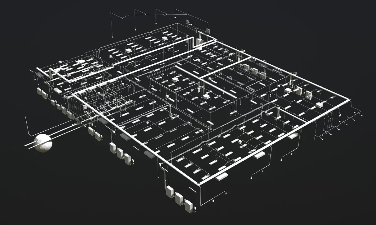 MEP piping in building 3D model