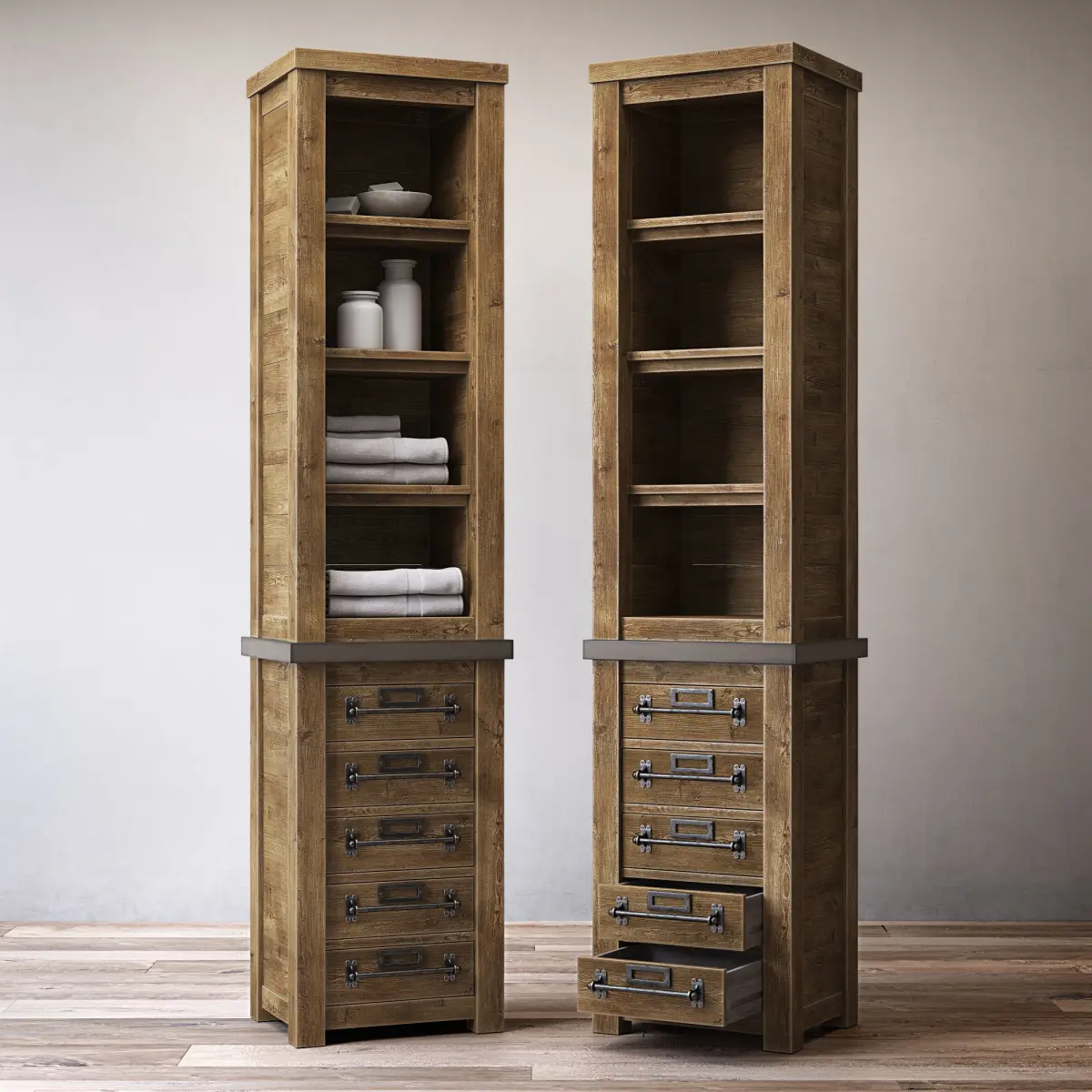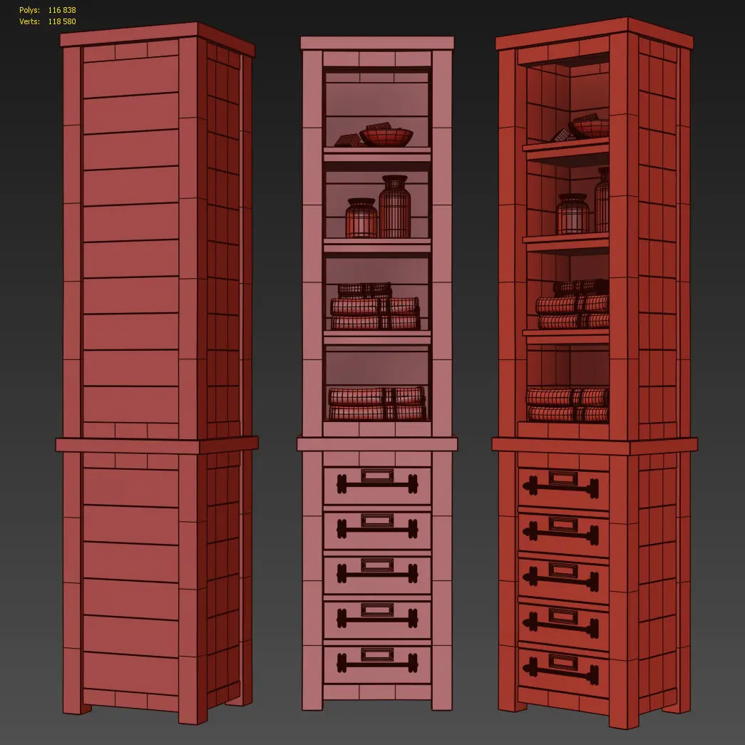 MERCANTILE TALL BATH CABINETArchives included: textures, materials (vray, corona),3DS, FBX, OBJ, 2011 max, 2014 max scene.Model was created in 3ds Max 2014.Shader for V-Ray 3.30.05Shader for Corona 1.5Dimensions :•20W x 16D x 84"H•51cmW x 41cmD x 213cmH