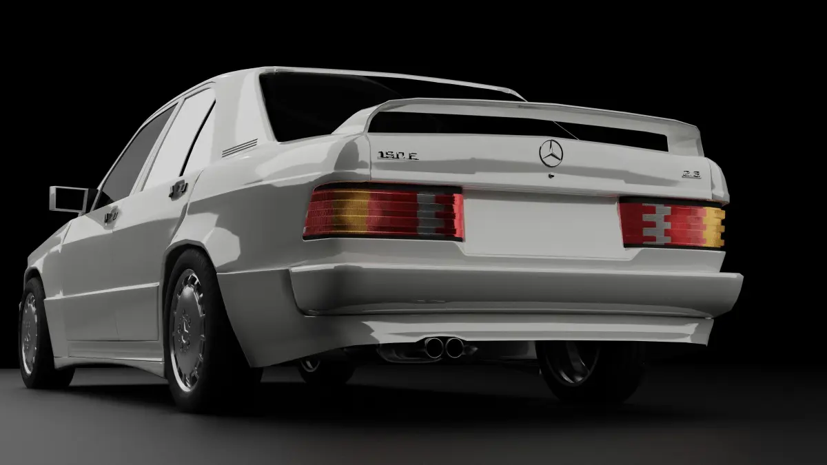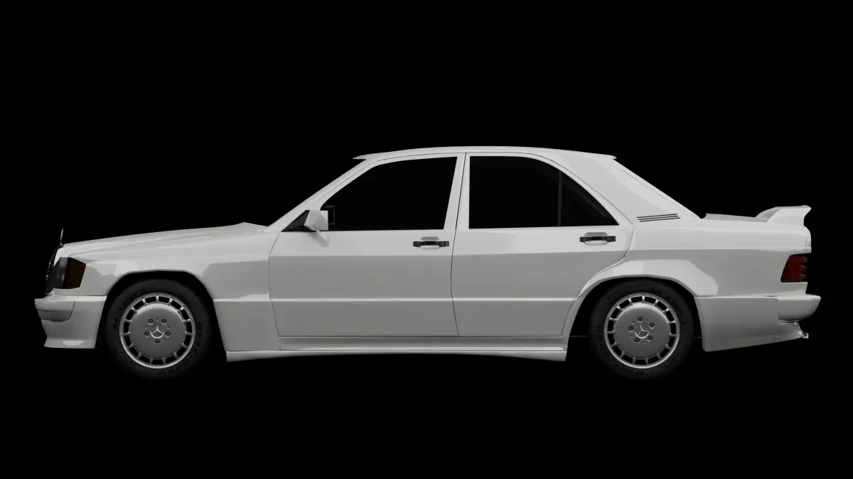 PLEASE READMercedes 190 highpoly 3D model made in blender,Does not include a detialed interior, just a super low poly one. Is not rigged. Has no under side. Has very simple textures. Is UV unwrapped although not proffesionally. Is made of quads. No licence plate on vehicle and has very simple low poly springs and breaks.