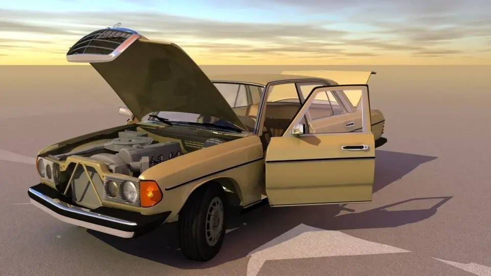This is a model of my own car, the Mercedes 300D turbo diesel that I built using Lightwaves modeler. It is unfinished but I am not adding to it anymore to it so I thought I would put it up for sale as is. The LWO comes with a scene file that has rotation limits on all movable parts in the layout and the FBX is an export from that scene.Please enjoy :)
