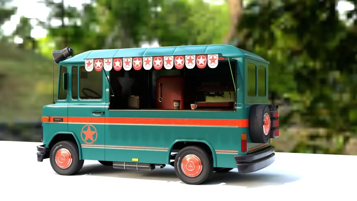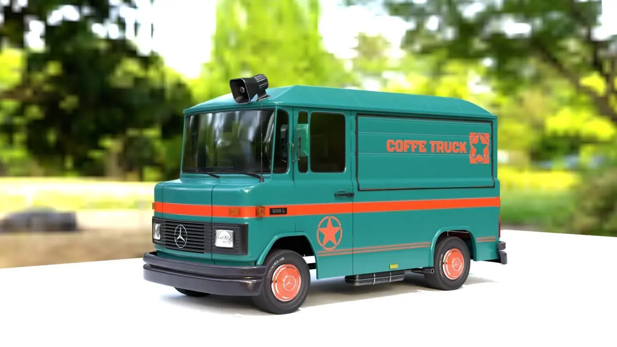 Mercedes 508 L Coffe Truck Eevee and Cycles For Render all textur files are in ''textur.' file If you need an edit, change or format, please ask! formats; OBJ .obj, .mtl, AUTODESK .fbx, ALEMBIC.abc, STEREOLITHOGRAPHY.stl, PLY.ply, COLLADA.dae, BLENDER 4,4,2.blend