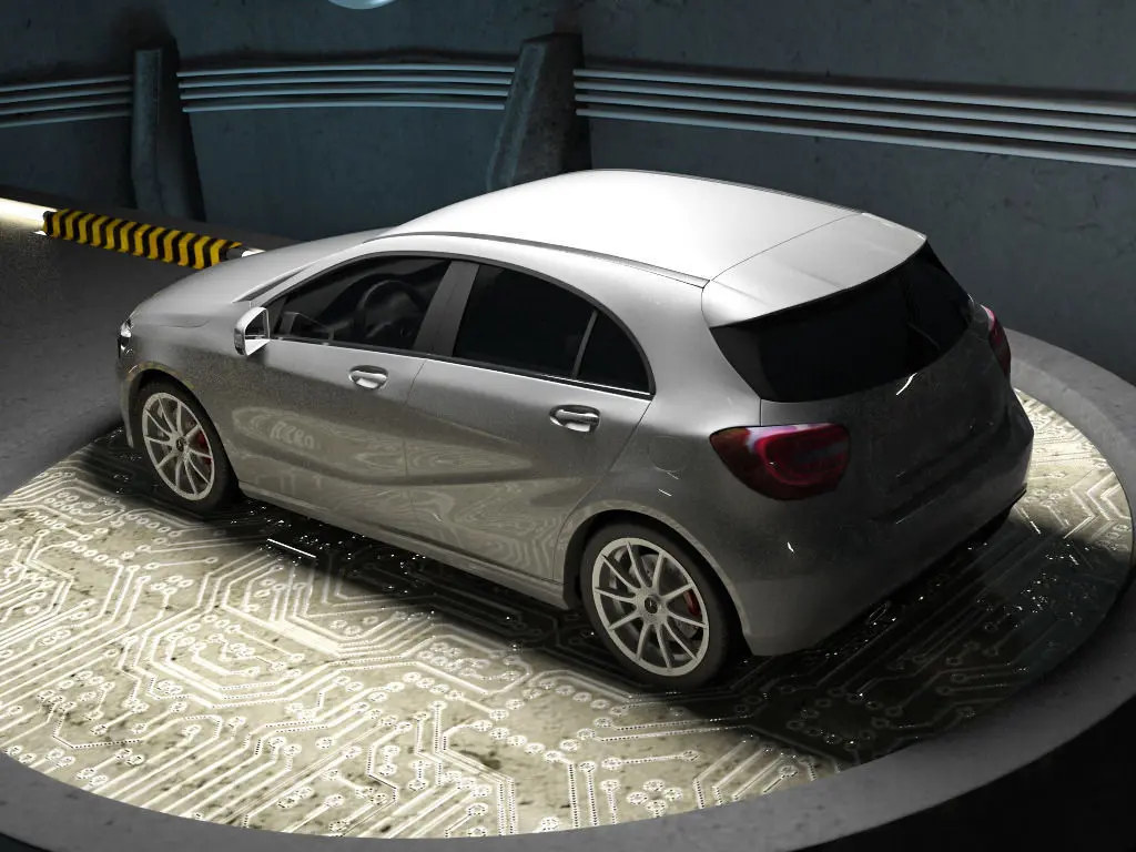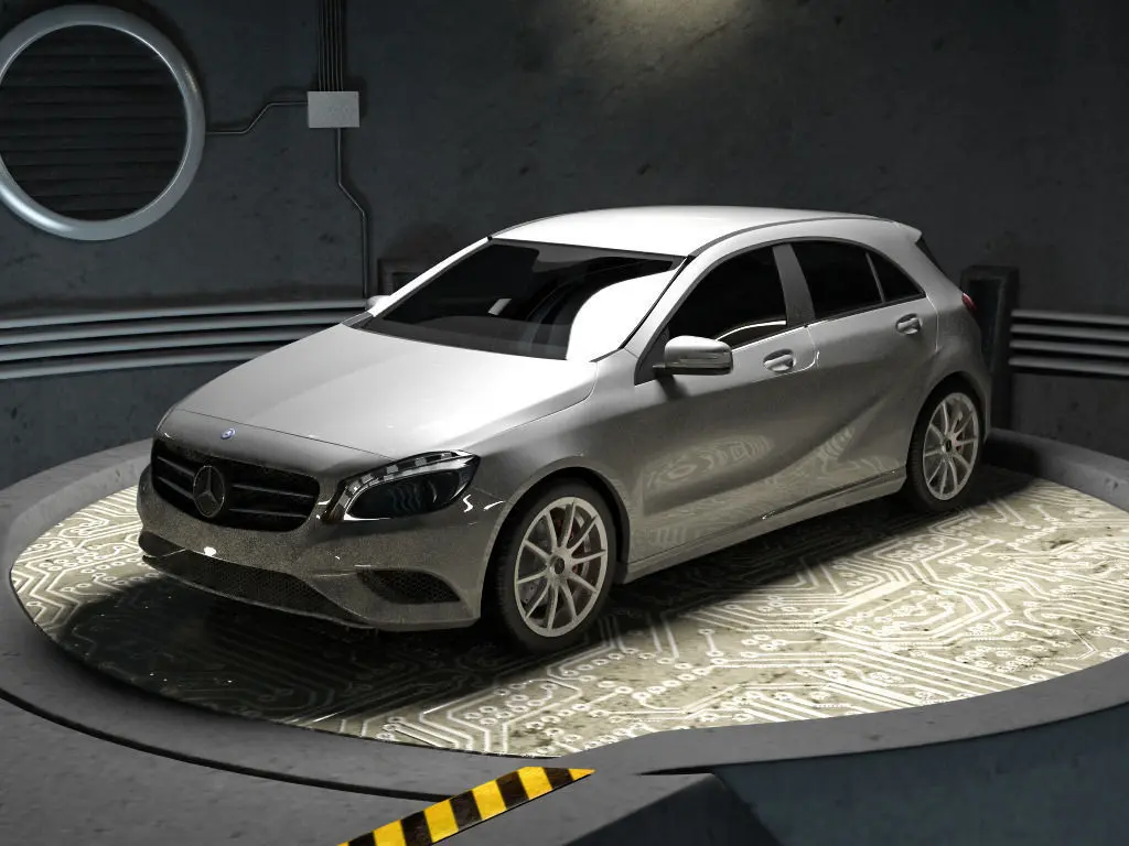 Mercedes A class w176 + futuristic garage 3D model, Vray.