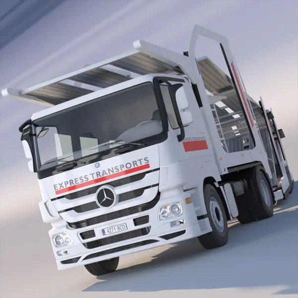 Very detailed model of the Mercedes Actros Tractor Head with Car Transporter Lohr 300.