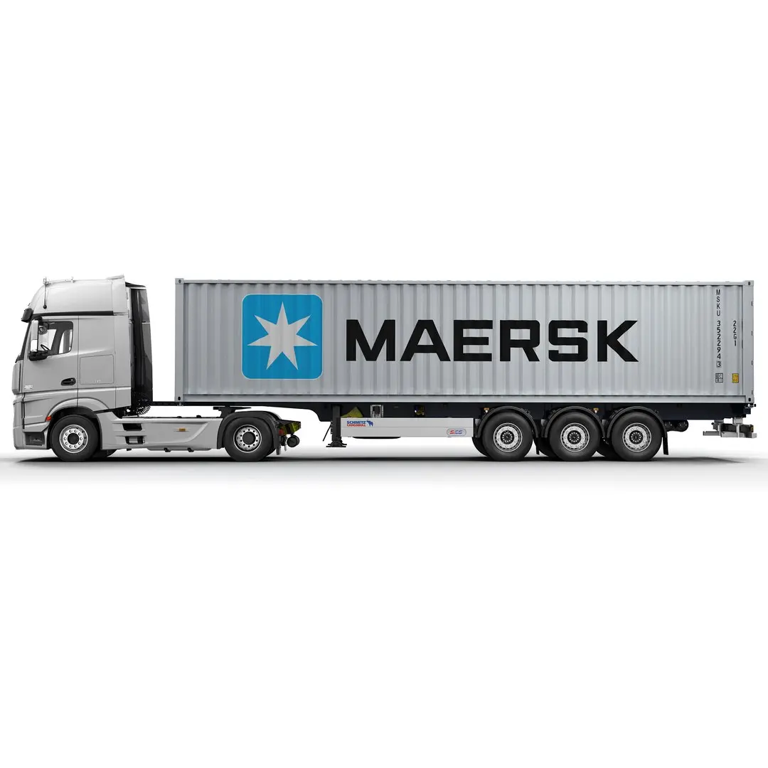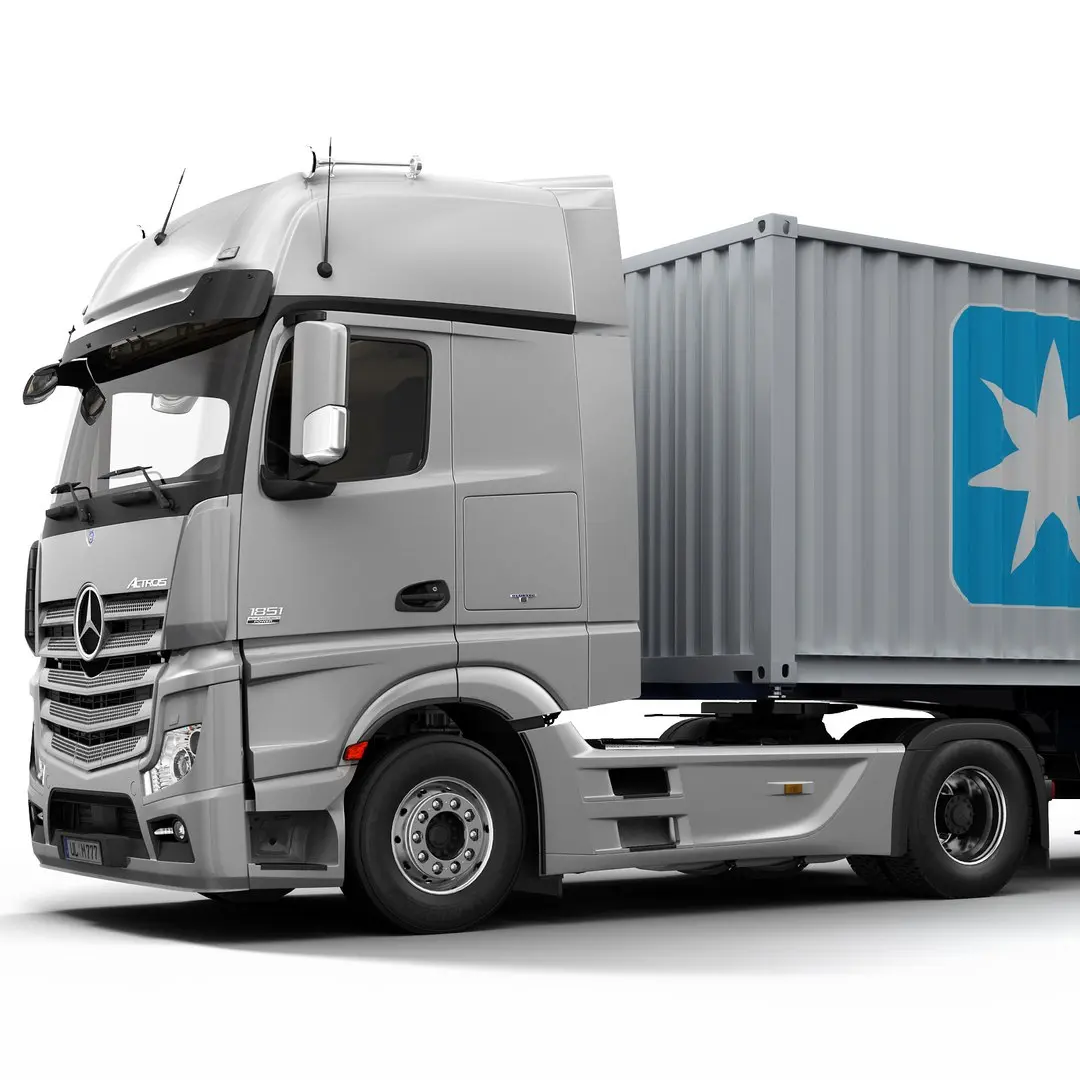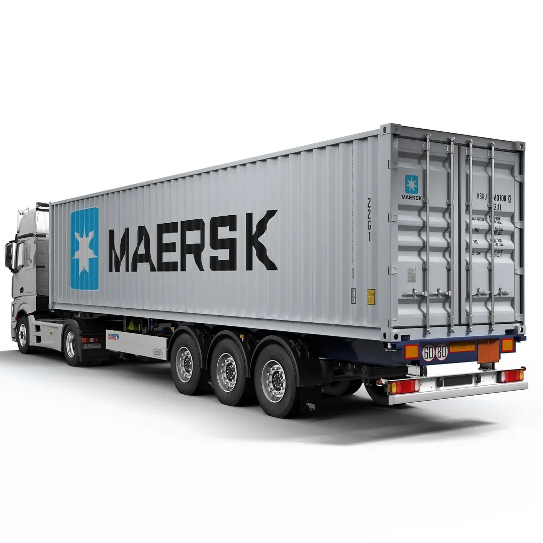 Realistic 3d model of Mercedes Actros 2012 With Semi-Trailer Container.