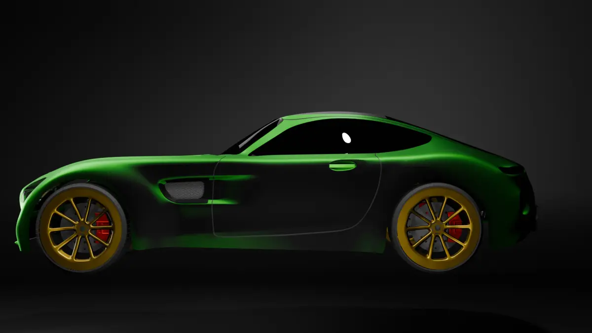 This is a highly detailed 3D model of the Mercedes AMG GTS, created in Blender and meticulously crafted for use in rendering, animation, and virtual production. The model captures the signature design elements and aggressive styling of the real-world AMG GTS, optimized for realism and performance.
