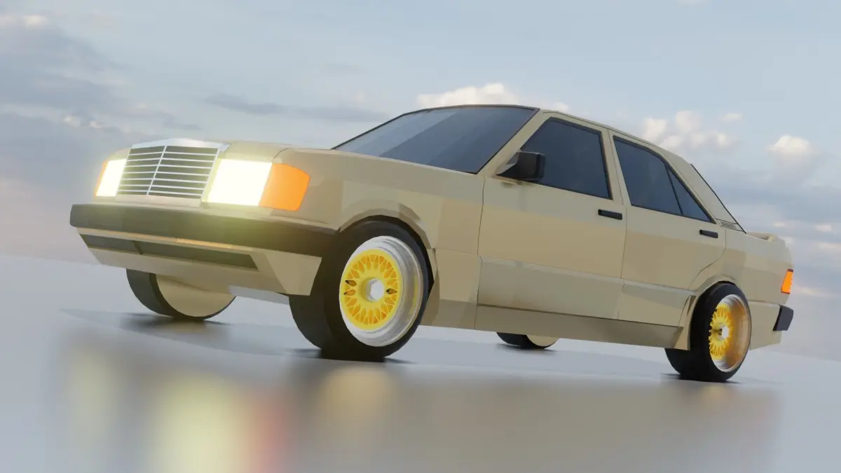 Model car Mercedes Benz w201 190 made in low poly style called baby benz