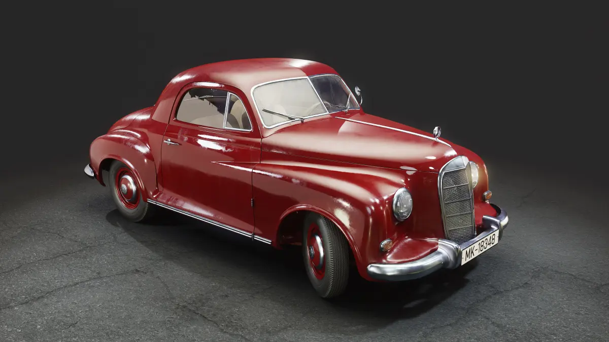 As early as 1947–1948, Mercedes-Benz began developing a body design that would later become known as the pontoon style, which gained widespread popularity in the 1950s. The company aimed to enter the market for affordable and compact cars, leading to the creation of a four-cylinder engine with a 1.2-liter displacement.The chief engineer behind this small Mercedes was Josef Müller, who had previously contributed to the development of the rear-engine Mercedes-Benz 170H (W28) and the W25 race car, the most remarkable feature of the car, from a modern perspective, was its pontoon-style body, which clearly anticipated the design characteristics of the Mercedes-Benz W120 series, which entered production in 1953. The upright, slightly V-shaped radiator grille seamlessly transitioned into the hood, while the rounded doors, elegantly curved rear end, and wide B-pillar unmistakably foreshadowed the styling of later production models with pontoon bodywork.According to Josef Müller's 1948 blueprints, the car had a total length of just 3.7 meters.