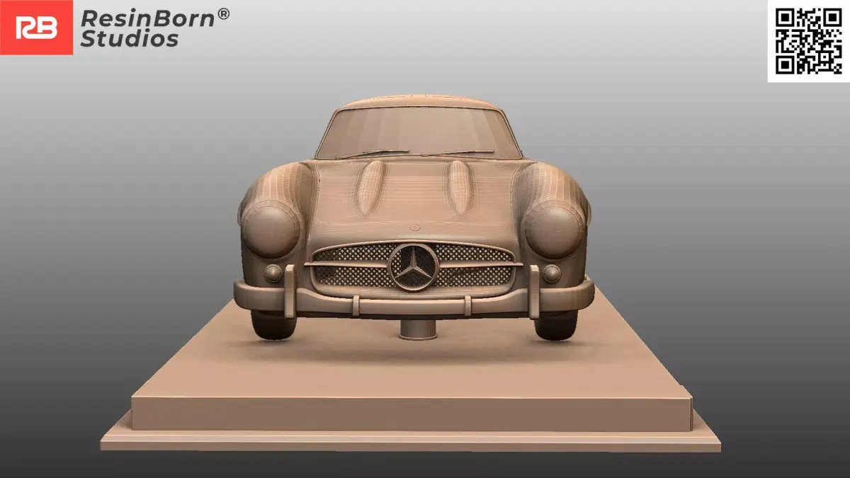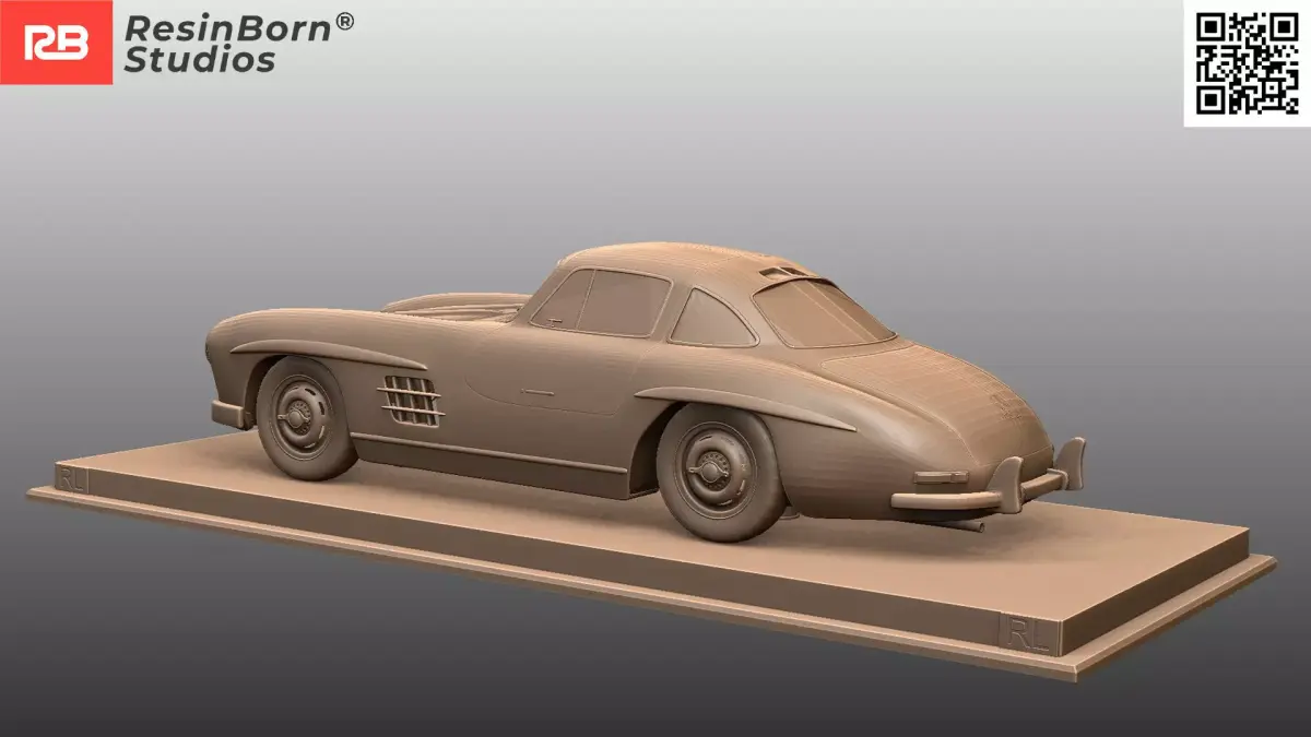 High-detail 3D model of the legendary Mercedes-Benz 300 SL Coupé (W198), famously known as the Gullwing due to its iconic upward-opening doors. This digital sculpture faithfully captures the groundbreaking design and elegant curves that defined the sports car of the 1950s.