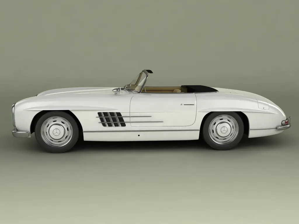 High detailed,correctly scaled model of Mercedes 300SL convertible.Rendered with V-Ray.Geometry is Editable Poly.Mesh Smooth is use separately to objects with iterations 2 (233703 polys 244623 v.) Materials and textures are included.Modeled in 3dsmax8. files with standart materials are included.