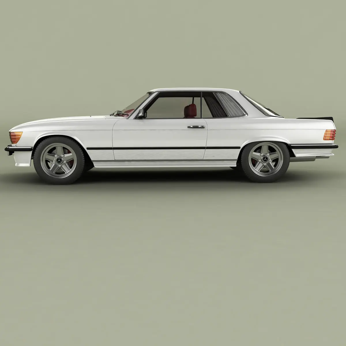 High detailed, correctly scaled model of Mercedes-Benz C107 500SLC AMG 1975. Originally created with 3ds Max 8. Rendered with V-Ray, files with standard materials are included. Unit system is set to metric units. Model is built to real-world scale. Geometry is Editable Poly (quads/tris only). TurboSmooth is use separately to objects (121 of 179 named objects) with iterations 2 (1691507 polys, 875937 vert.) Each file was checked before upload. Materials and textures are included (7 textures - jpg 1024X1024).