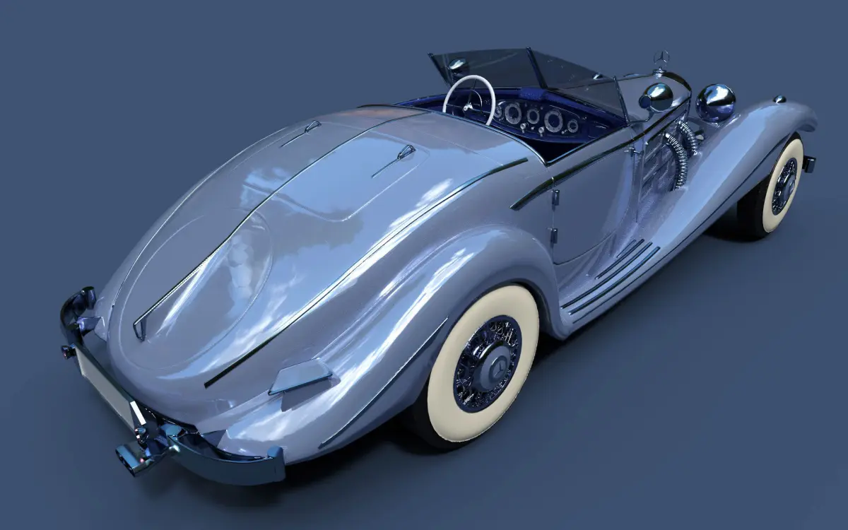Accurate Mercedes-Benz 540k Special Roadster model with fully textured interior. Doors can be opened. The model includes modelled tires.