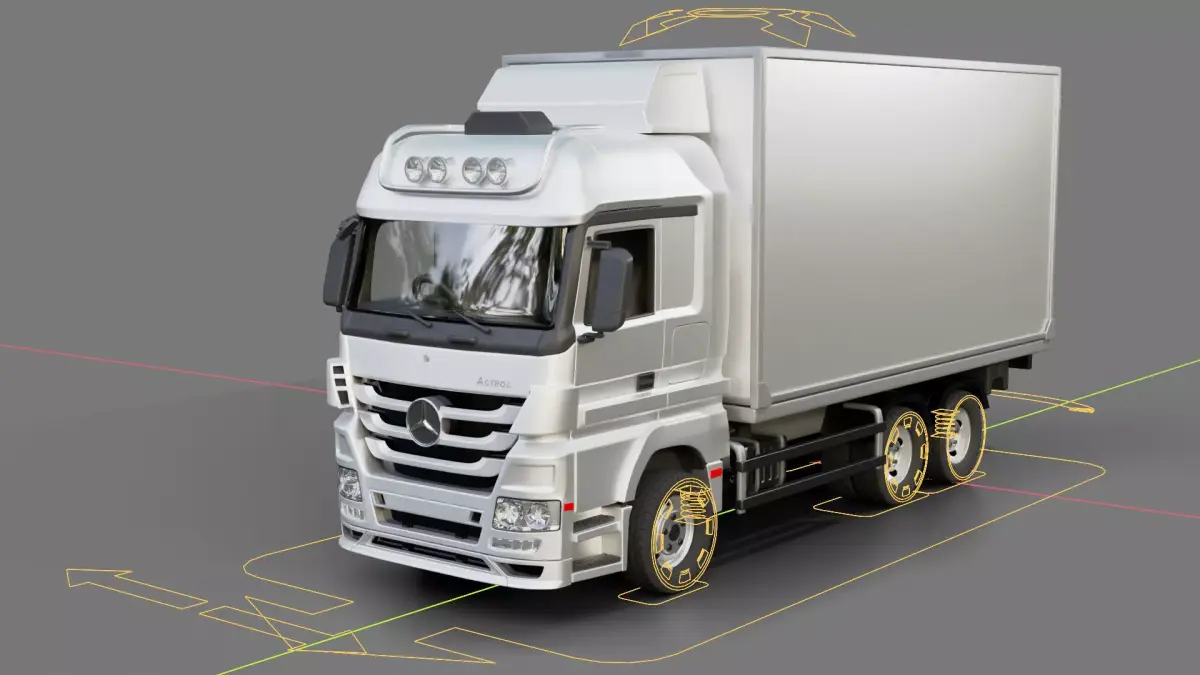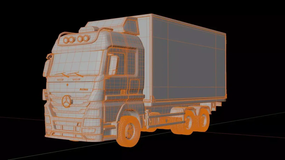 3D model of the Mercedes Benz Actros Box Truck. Created in Blender and rigged.The mesh of the model in the Blender file format is mainly quads.