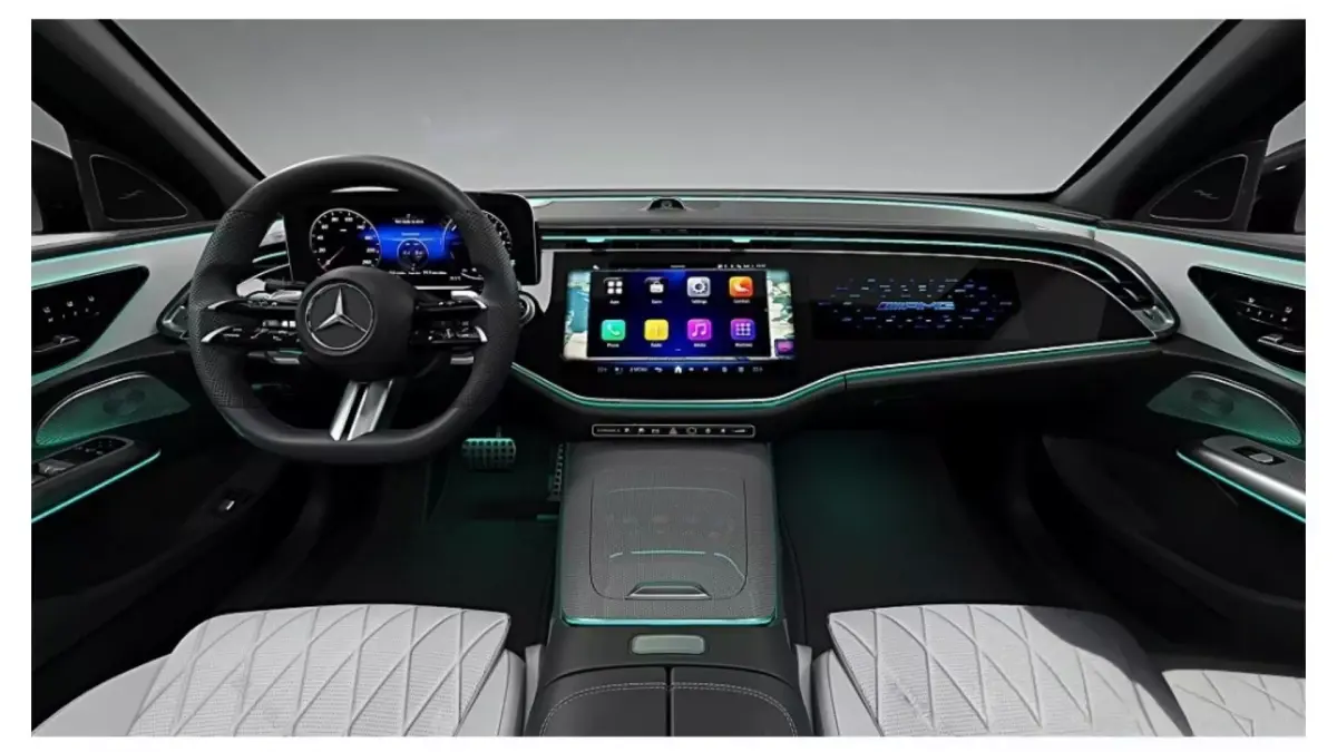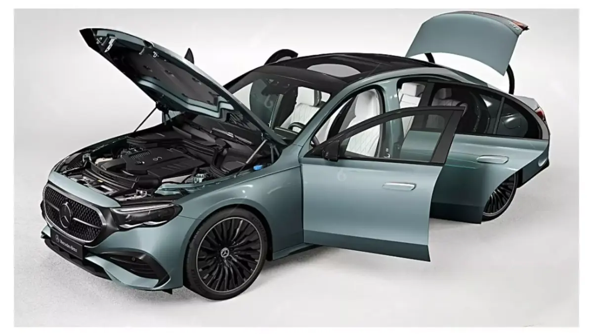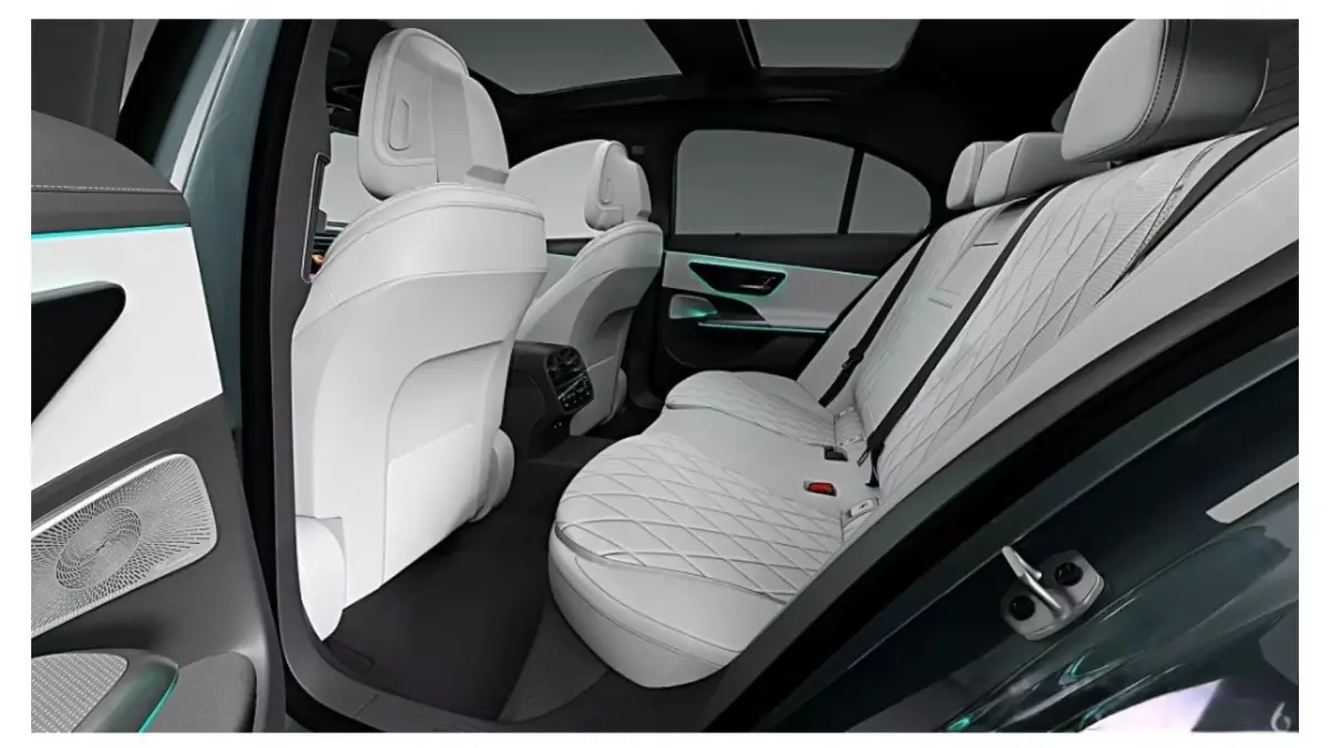 This is a new luxury sedan from Mercedes-Benz. The car body features a fresh light blue-gray tone. The front face is equipped with the iconic star emblem grille and sharp LED headlights, while the black wheel rims and side mirrors add a sporty touch. The overall design combines elegance with a sense of technology, demonstrating Mercedes-Benz's high-end craftsmanship and fashionable design style in the luxury automobile field.