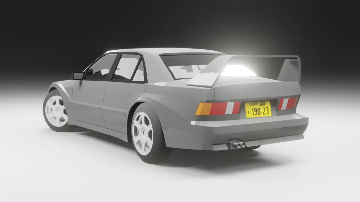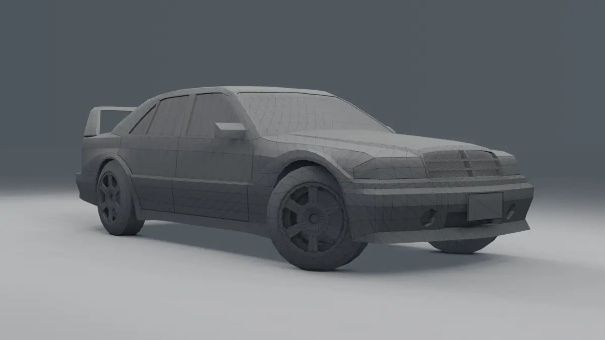 This 3D car model was made in Blender 3.0. All the renders you're seeing are rendered with the Eevee engine. The only type of file available for download for this car is the .blend file. This particular car was an icon in the 90s. This car model is mid poly, and it features a very simple interior, so it's much more easy to work around with.