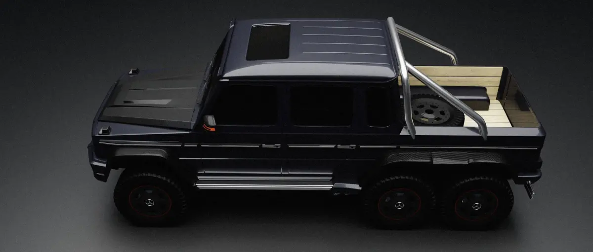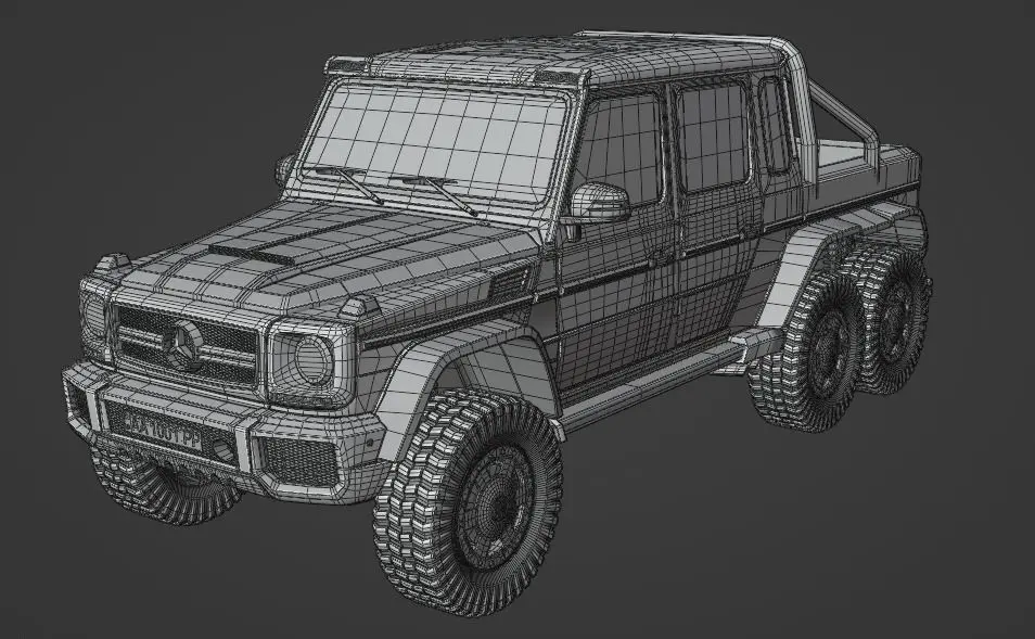 High quality 3D model of the exterior of Mercedes G-Class W463 6x6. Made on renders from open sources. Ready for subdivision for a smoother finish. The geometry is not triangulated. Does not include interior.Included is a high quality tire model with high detail.The blender file has procedural materials.Each piece of geometry is grouped by material.The model is ready to render in Cycles.