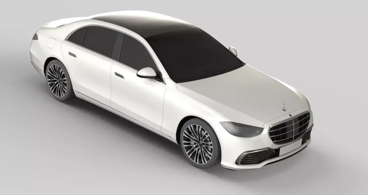 High-poly 3D model of the Mercedes-Benz S-Class with precise proportions and detailed exterior geometry. Includes accurately shaped body panels, lighting units, glass surfaces, chrome trims, and wheels. Ideal for high-end visualization, rendering, animation, and any CGI project requiring a realistic luxury sedan exterior.
