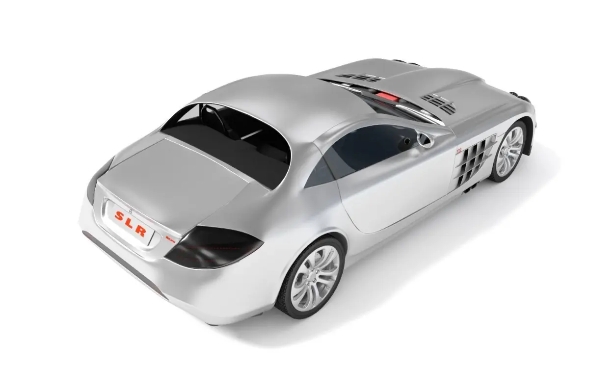 The original file is MersedesPreview.blend, so if you want to reduce the number of polygons you need Blender!Render: Blender/Cycles.