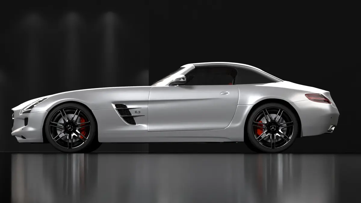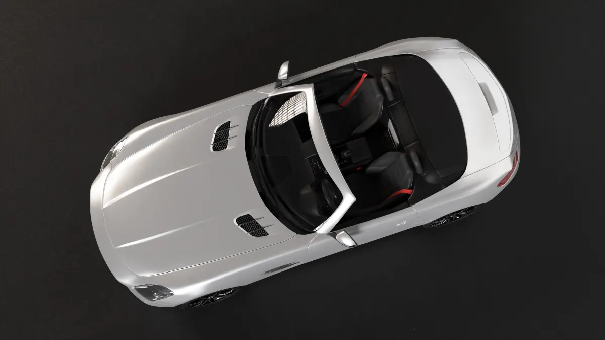 This Mercedes roadster 3D model was created to achieve a photorealistic result that faithfully represents the real car, both in the exterior and interior. The entire vehicle is constructed using quad geometry and is divided into parts: the wheels, the car body, the roof, the seats, and various details such as grilles, interior seams, and elements of the control panels. Each of these parts has real-life measurements in meters and is appropriately named. For each component, there are individual texture maps with a resolution of 4k, except for the car body, which boasts a 16k resolution, and the interior textures, which are 1k. If preferred, one of the native files has procedural materials that can be customized as needed (the other already has the textures applied).