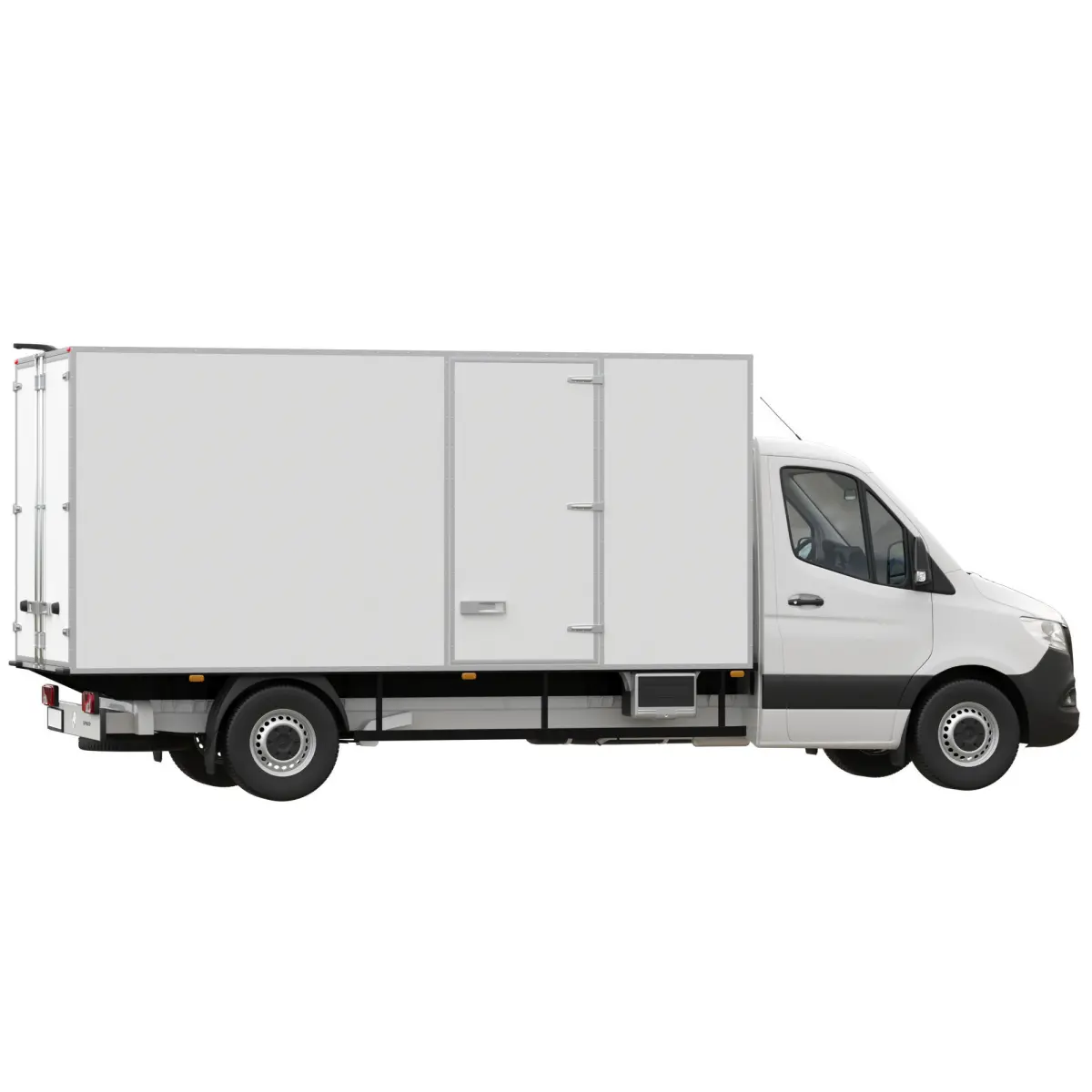 Mercedes-Benz Sprinter of the third generation (2018-…). Sprinter Chassis Cab Isothermal L3. 3 vehicle lengths: compact, standard, long (L1, L2, L3). Available in max gross weights of 3000 kg, 3500 kg, 4100 kg and 5000 kg. Maximum payload 2675 kg for Sprinter with standard roof with a maximum permissible total weight of 5000 kg. Available rear and all-wheel drive options.