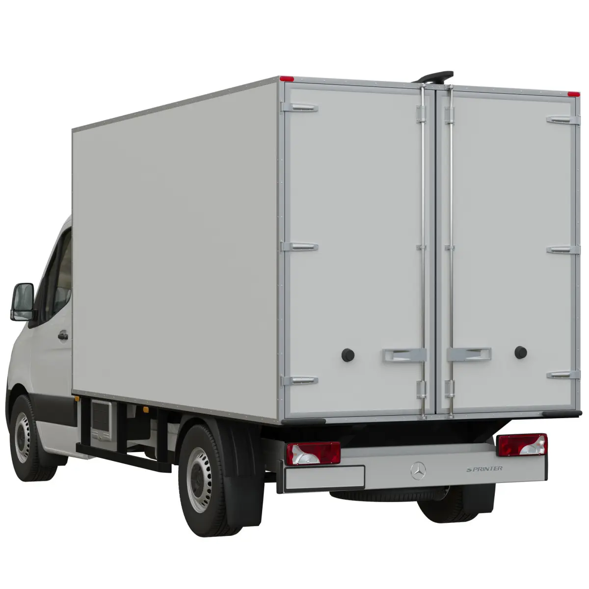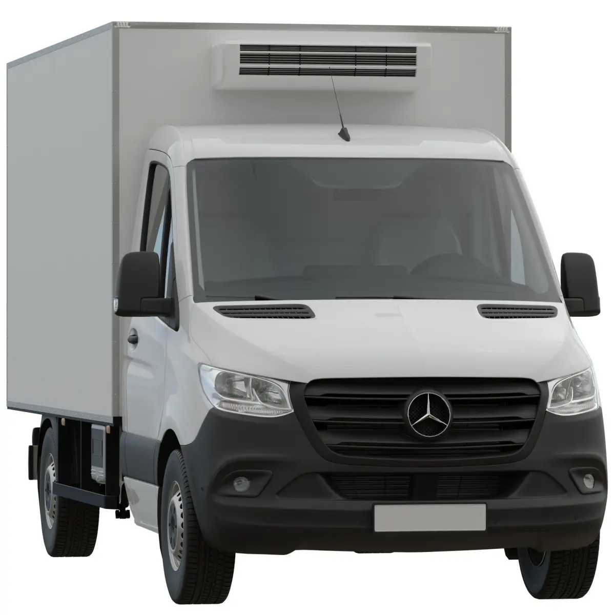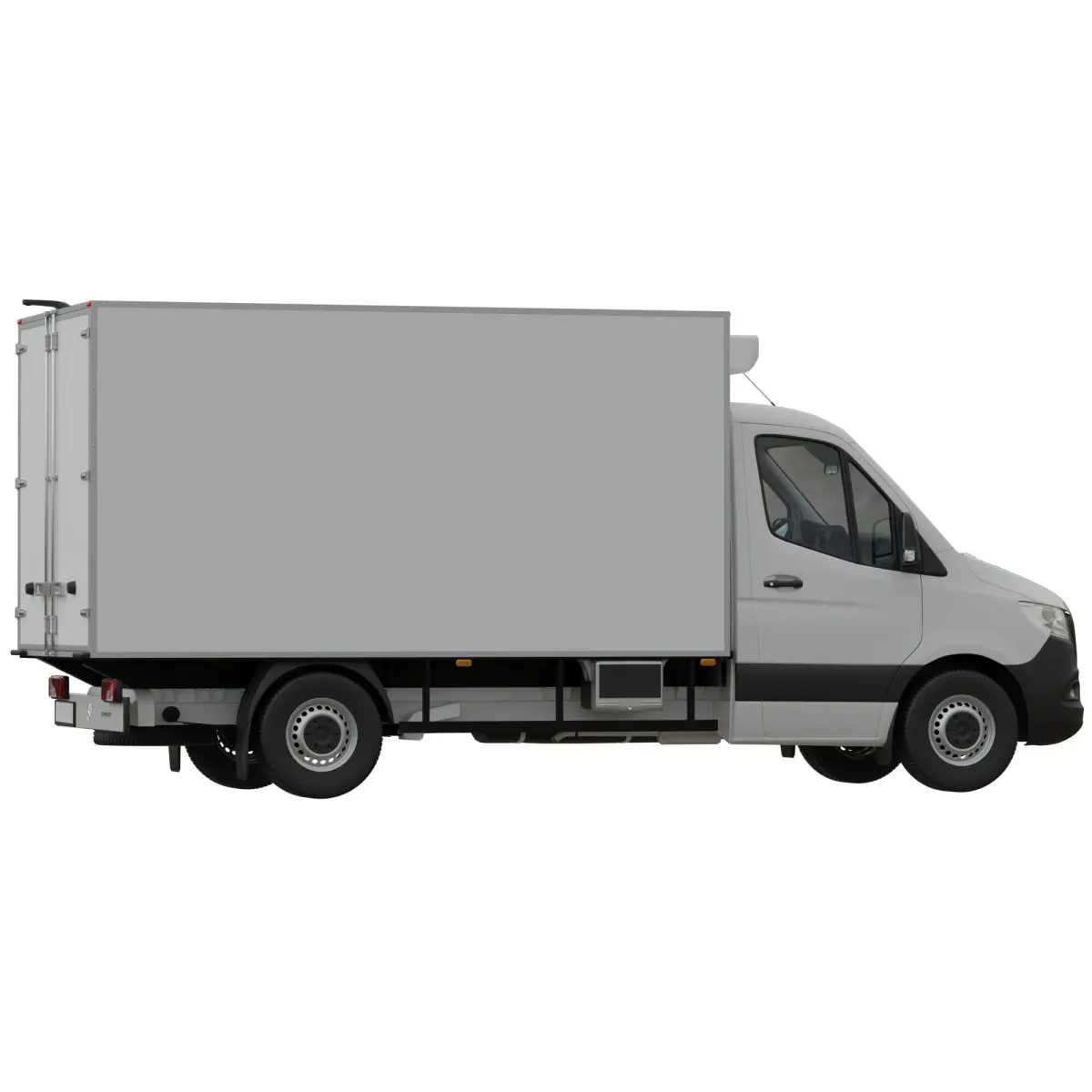 Mercedes-Benz Sprinter of the third generation (2018-…). Sprinter Chassis Cab Refrigerator L2. 3 vehicle lengths: compact, standard, long (L1, L2, L3). Available in max gross weights of 3000 kg, 3500 kg, 4100 kg and 5000 kg. Maximum payload 2675 kg for Sprinter with standard roof with a maximum permissible total weight of 5000 kg. Available rear and all-wheel drive options.