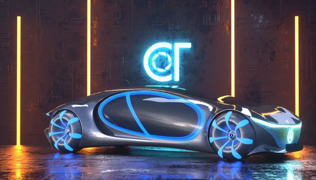 The 3D model features a sleek and futuristic design, with a streamlined body that mimics the look of a living creature. The exterior of the car is adorned with thousands of tiny LED lights, which change color to indicate different functions and create a stunning visual effect.