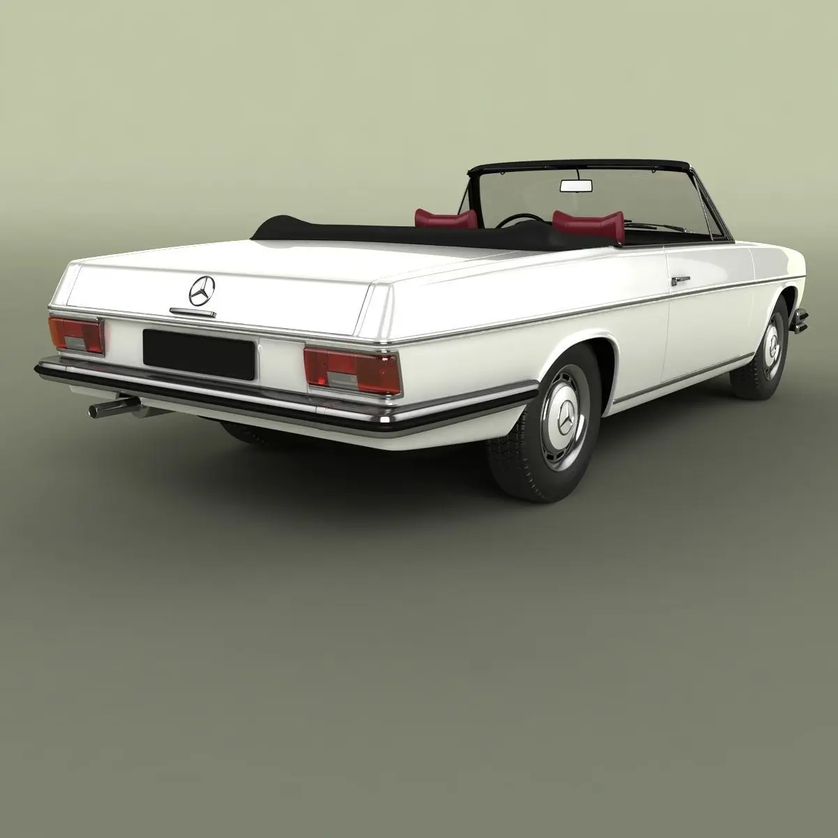 High detailed, correctly scaled model of 1969 Mercedes-Benz W114 Convertible. Originally created with 3ds Max 8. Rendered with V-Ray, files with standard materials are included. Unit system is set to metric units. Model is built to real-world scale. Geometry is Editable Poly (quads/tris only). TurboSmooth is use separately to objects (78 of 124 named objects) with iterations 2 ( 965482 polys, 511025 vert.) Each file was checked before upload. Materials and textures are included (7 textures - jpg 1024X1024).
