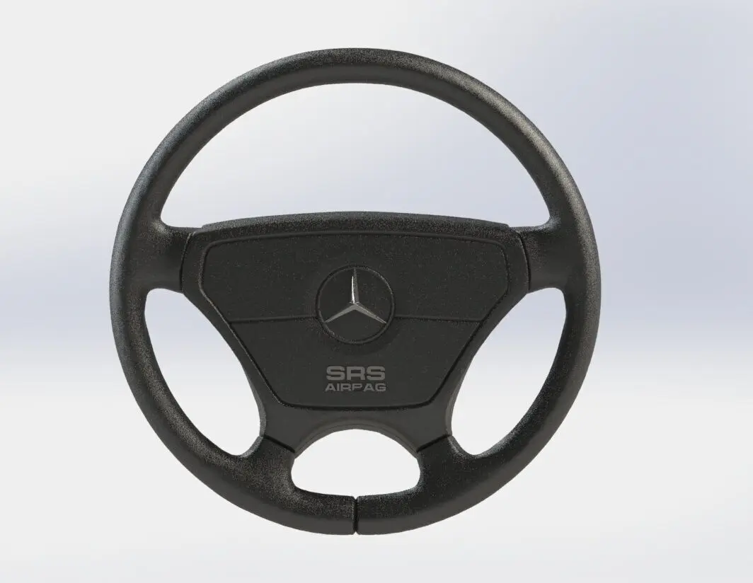 A highly detailed 3D model of a Mercedes-Benz W124 steering wheel, ideal for decorative projects, digital displays, hobby builds, or virtual showrooms. This model captures the classic styling of the W124 era and is perfect for interior design renderings, 3D-printed desk decor, or automotive-themed collections.