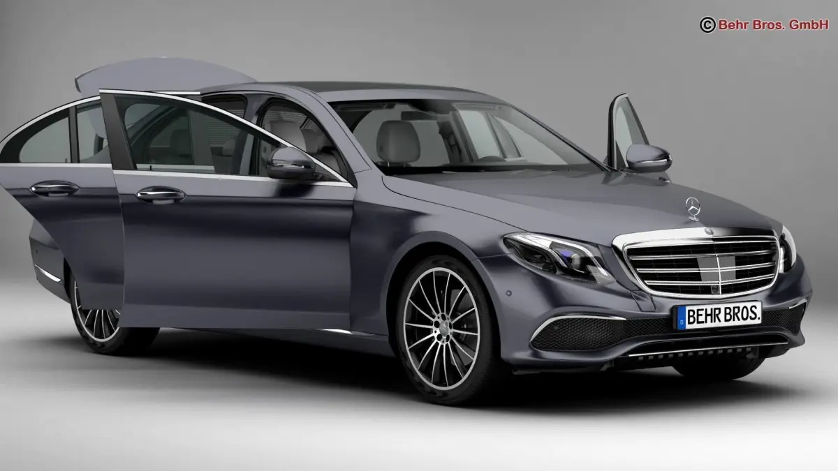 Accurate very high definition Mercedes E Class Exklusive 2017 model with highly detailed interior fully textured. Headlights and taillights are modelled, doors and trunk lid can be opened. The model includes modelled tires.