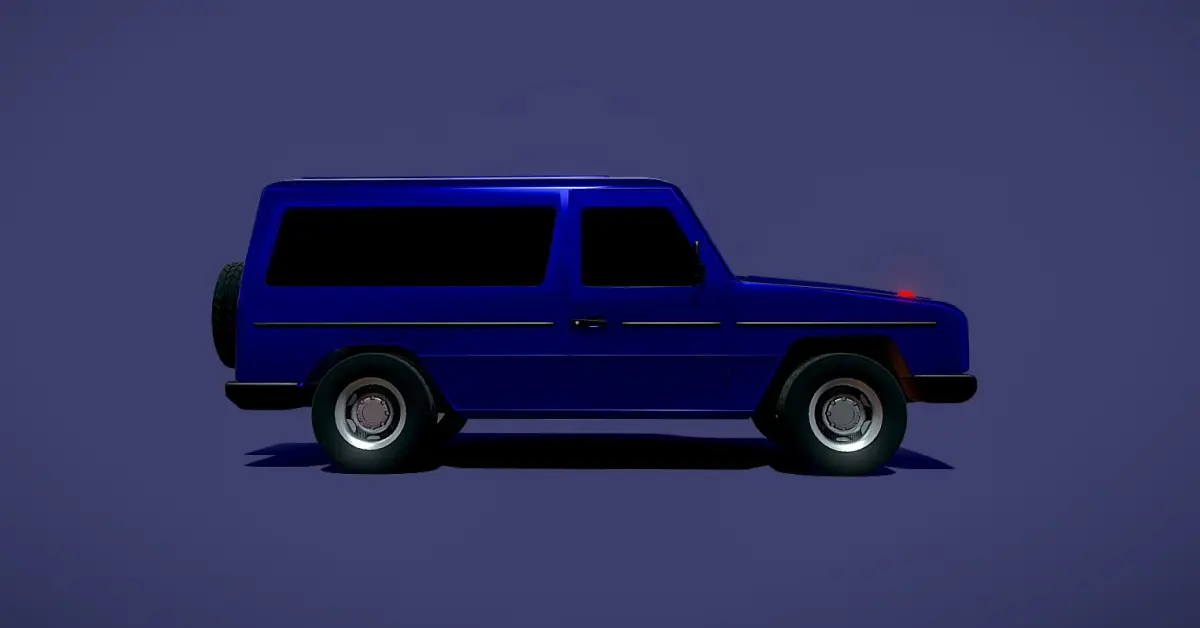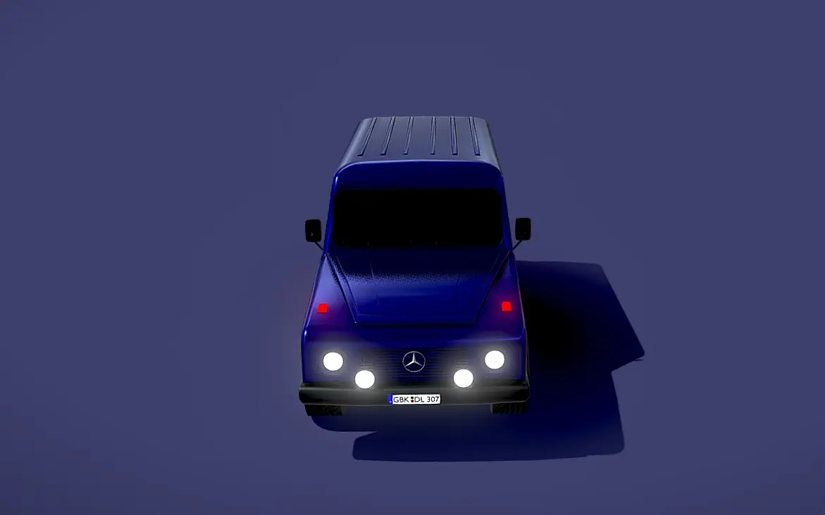 a Mercedes G Class form 1985.can be used at any platform (Unity - robloxstudio - etc).using UV maping.can be animated .seperaterd wheels and lights so you can controle the emmission.
