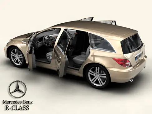 Accurate very high definition Mercedes R Class model, detailed interior, fully textured.