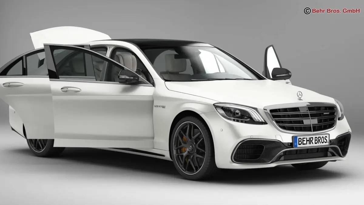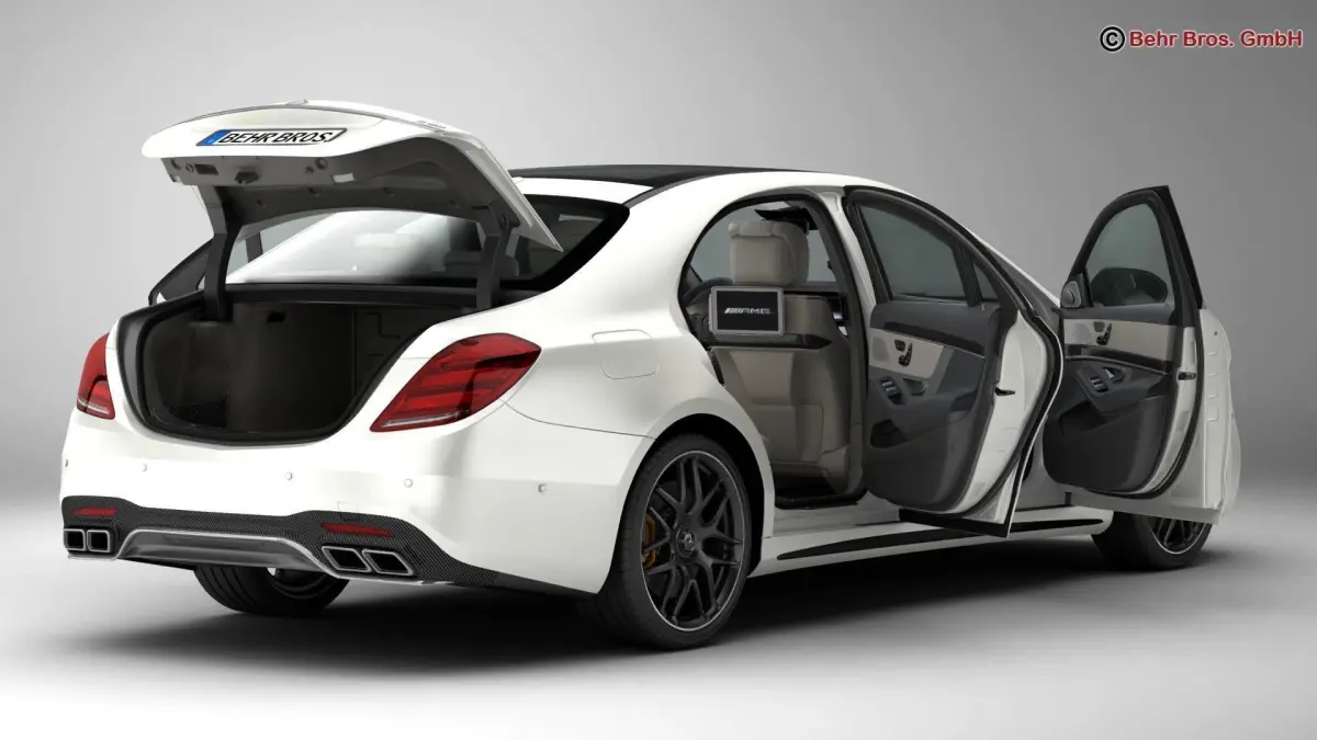Accurate very high definition Mercedes S Class AMG S63 2018 model with highly detailed interior fully textured. Headlights and taillights are modelled, doors and trunk lid can be opened. The model includes modelled tires.