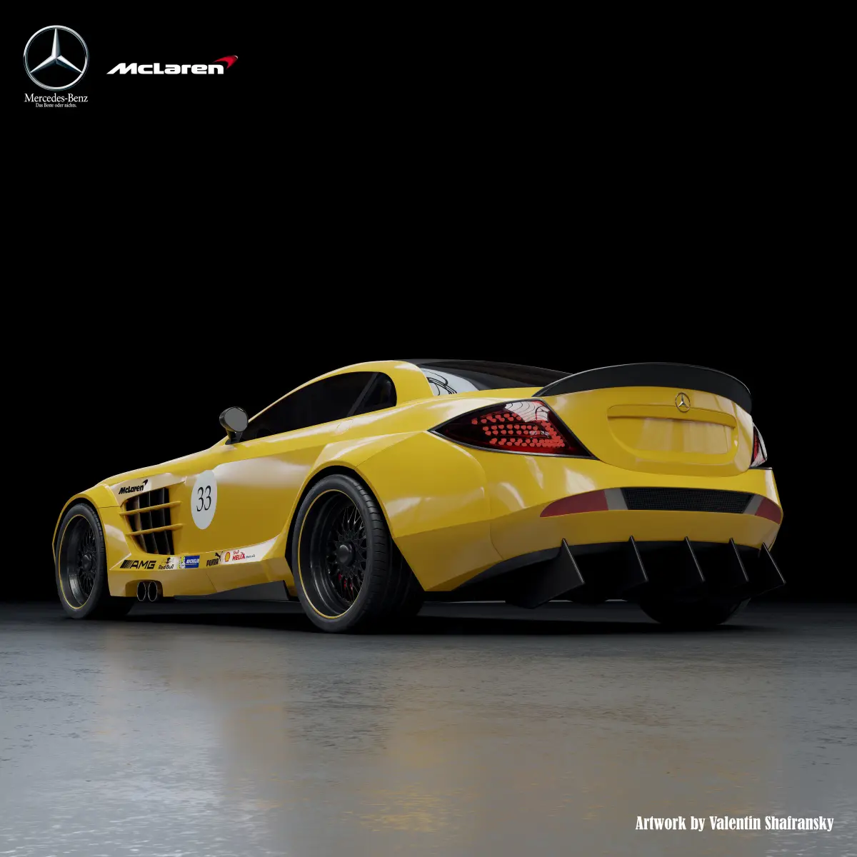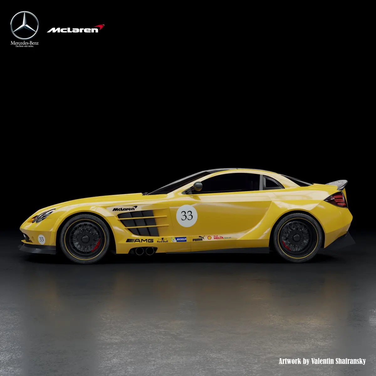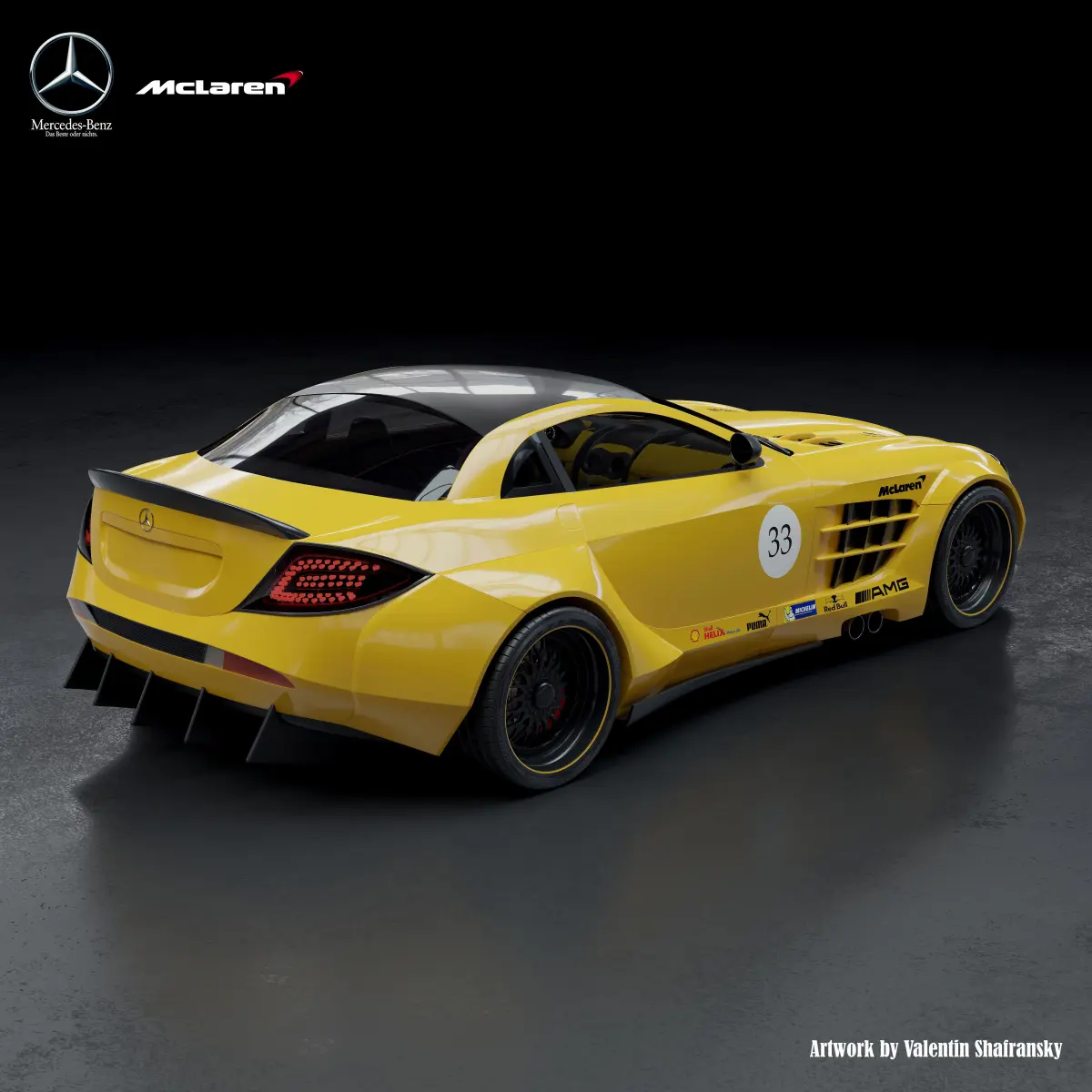 A well-designed Mercedes SLR McLaren model. The model has a power plant and a suspension system. Its own unique salon. Its unique body kit. The model is made under the subdivision syrface. The blend file contains the materials for the Cycles engine. You can also remove the body kit and get a finished version of the car