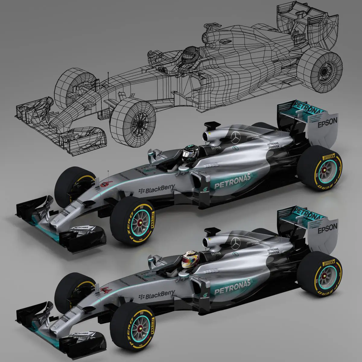 This is a 3D low poly model ,it was designed to provide a high definition in a low poly. Standard low-poly mesh with specific poly count. It`s the most accurate and realistic mercedes W06 hybrid of the market.It has all of details of mercedes W06 hybrid model. Rigged in the maya version. This is a recreation of mercedes W06 hybrid model,it can suffer modification over the season.Included all types os wheels, Lewis Hamilton and Nico Rosberg, theirs helmets and the steering wheel.The model is completely ready for use visualization in maya. For low poly model simply press “1” and for the high resolution press “3”. In Cinema4d go to function menu and subdivide. In 3dmax meshsmoothIn the low poly: Poly count : 59945 Vertex count : 62563In the high poly: Poly count : 988672Vertex count : 998963Textures included. Each texture is in jpg format and have a 4K texture resolution for high quality The files are date, obj, fbx, mb ,c4d and 3DS.In formats c4d, 3ds, dae, obj and fbx model exported to standard materials (textures), not contain mental ray shaders. files with the model does not contain extraneous or hidden objects (lights, cameras, etc.) original file format maya