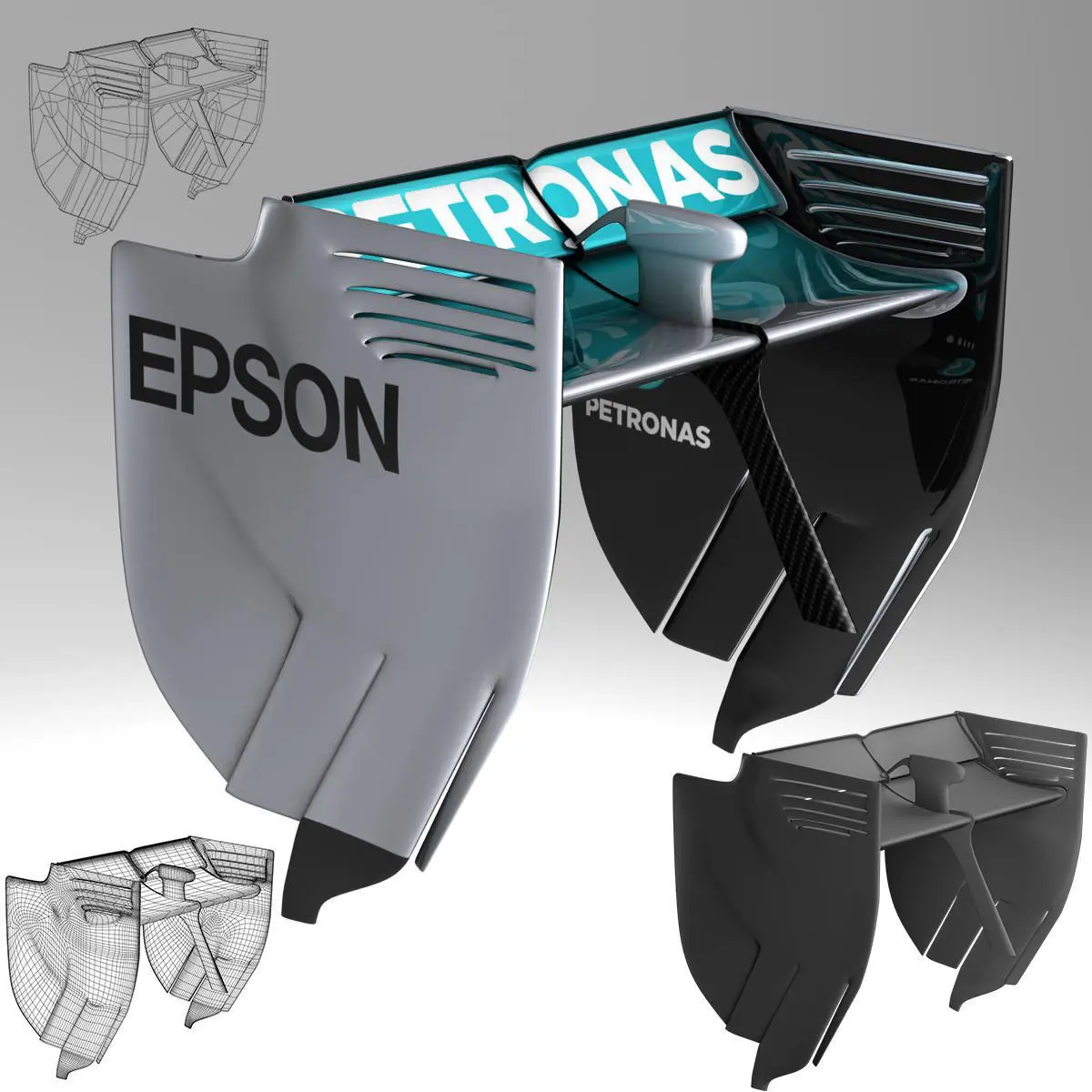 This is a 3D low poly model ,it was designed to provide a high definition in a low poly. Standard low-poly mesh with specific poly count. It`s the most accurate and realistic rear wing of the W06 of the market. This is a recreation of w06 rear wing model,it can suffer modification over the season.The model is completely ready for use visualization in maya. For low poly model simply press “1” and for the high resolution press “3”. In Cinema4d go to function menu and subdivide. In the low poly: Poly count : 2186 Vertex count : 2283In the high poly: Poly count : 34984Vertex count : 35377Textures included. Each texture is in jpg format and have a 4K texture resolution for high quality The files are dae, obj, fbx, mb ,c4d and 3DS.In formats c4d, 3ds, dae, obj and fbx model exported to standard materials (textures), not contain mental ray shaders. files with the model does not contain extraneous or hidden objects (lights, cameras, etc.) original file format maya