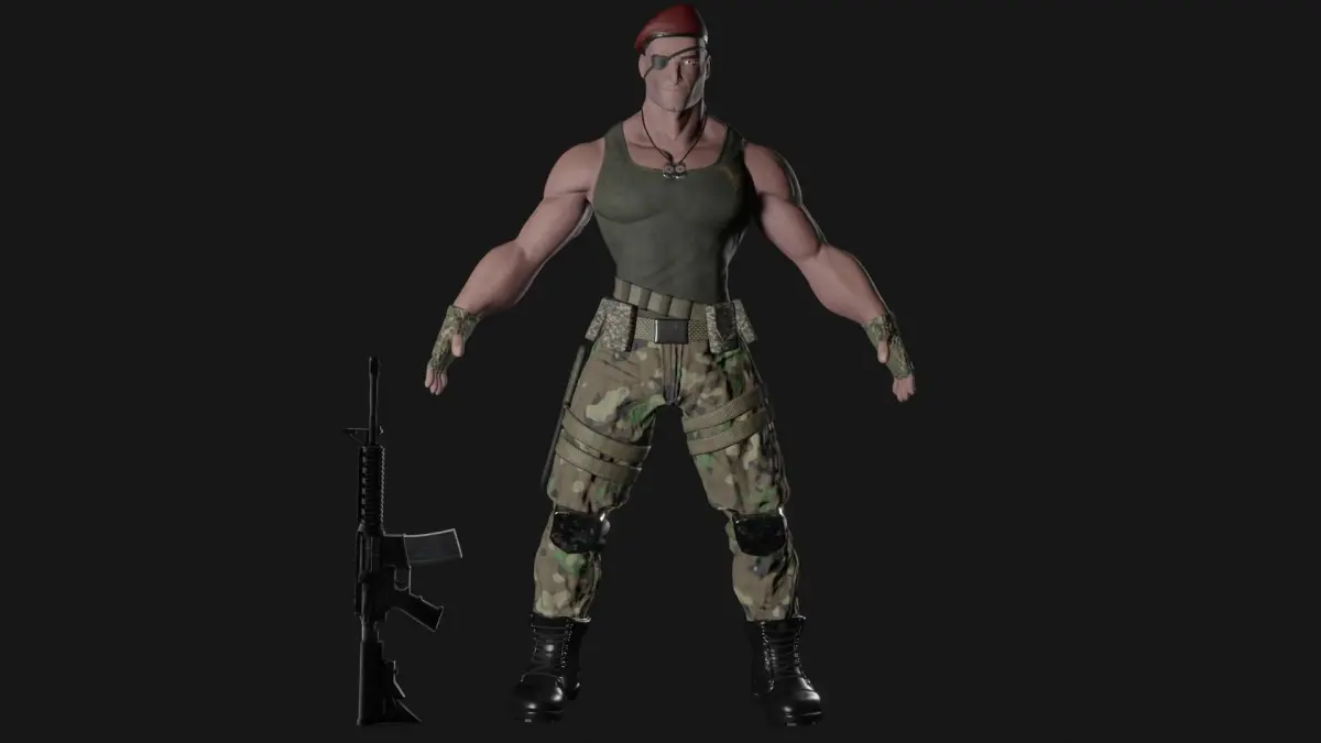 The mercenary soldier .character game ready with high quality retopology .great for riging and animation ,its mid-poly count character with high quality textures every single object textured in substance painter comes with 2 weapons- M4a1 rifle and knife all the parts are removable ,that should give you a head start in your next project.